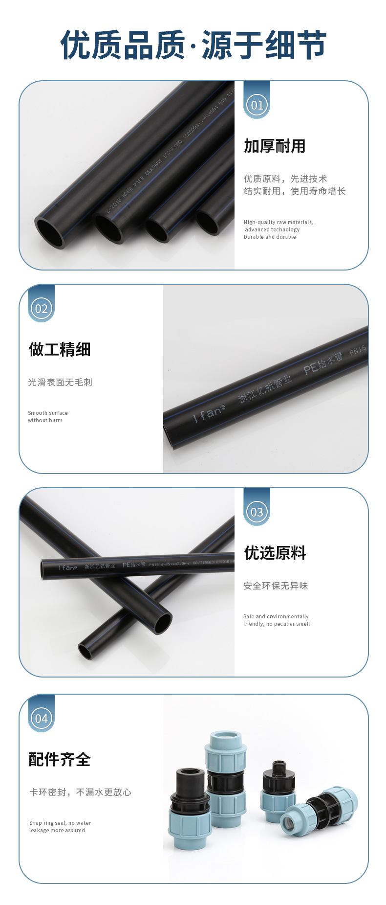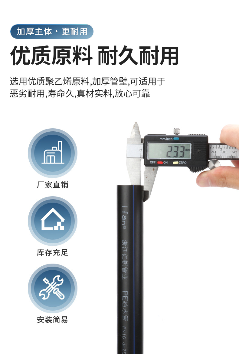 包装清单:1钰舜 PE给水管 全新料自来水工程 聚乙烯灌溉管