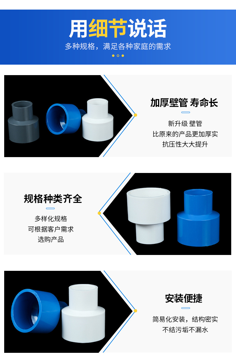 包装清单:1钰舜 塑料管件 PPR变径接头 DN40*25 /DN40*20/ DN32*20