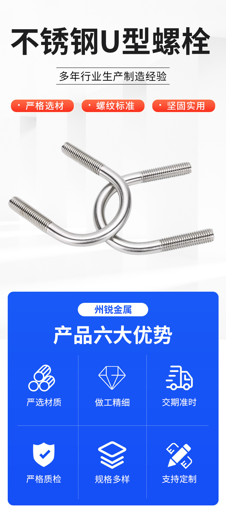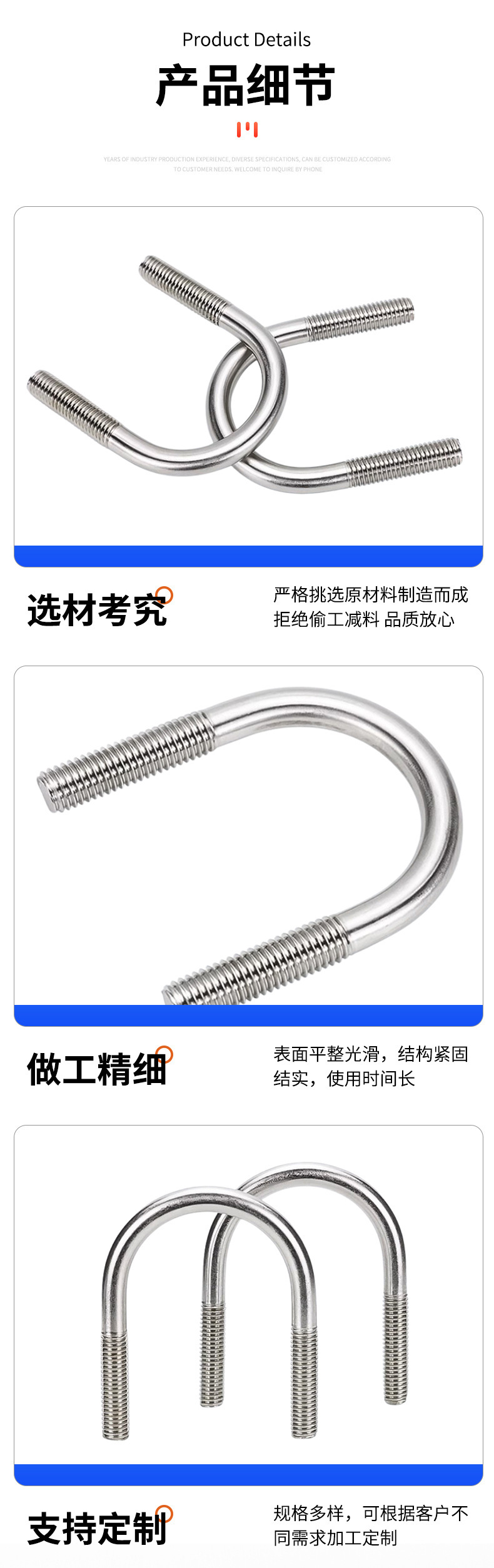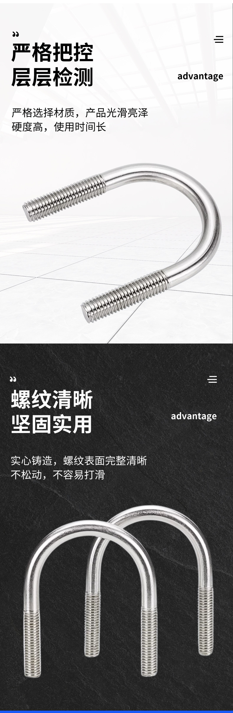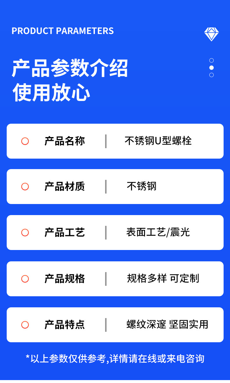 包装清单:1冀螺 U型螺栓 带两个螺母 不锈钢U型不带横担