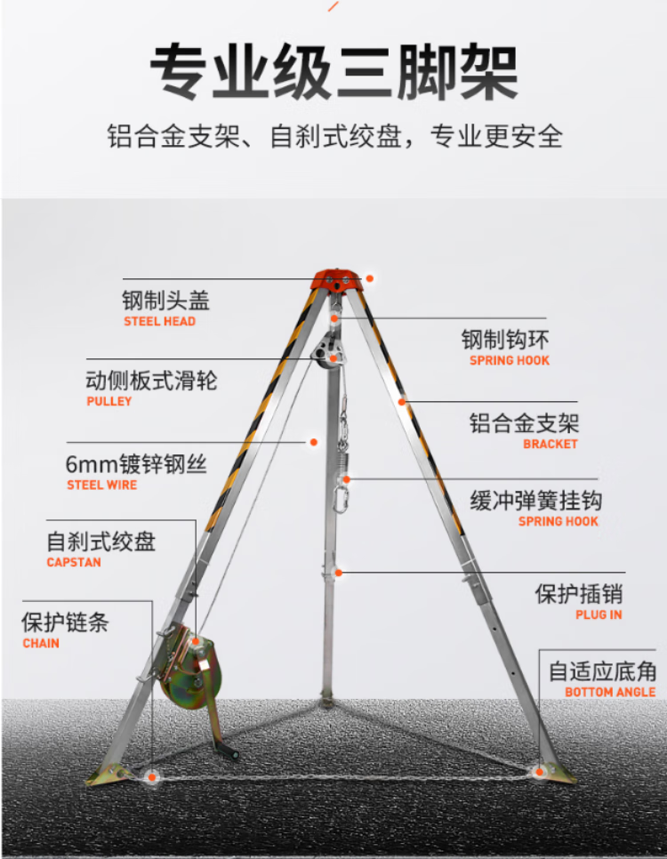 商品名称:建刚救援三脚架690102 含30米绞盘 可收缩 带绞盘三脚架