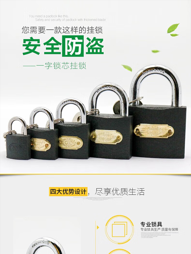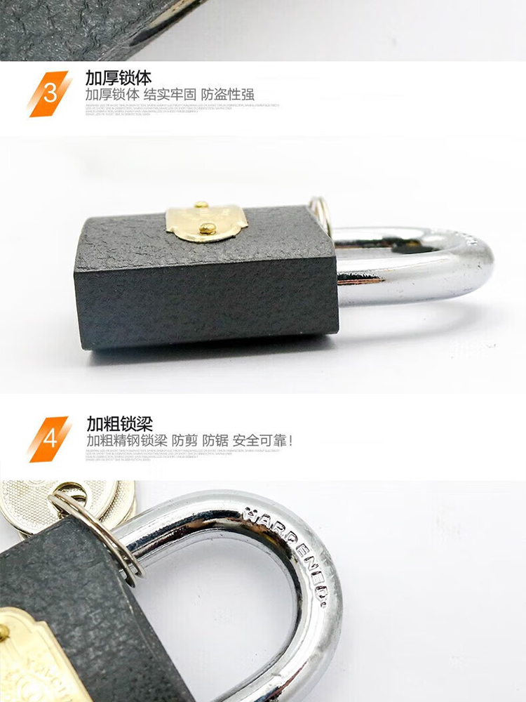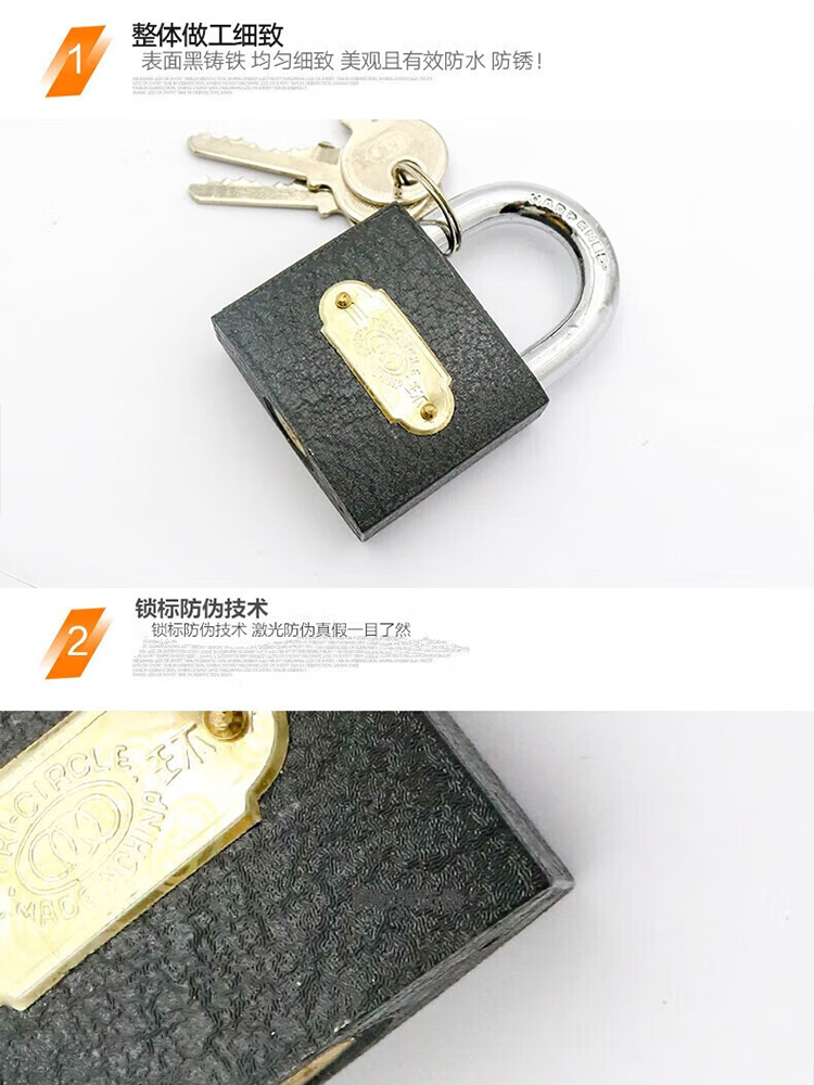 包装清单:1三环挂锁 柜仓库柜门锁头 房门长梁厚版铁挂锁