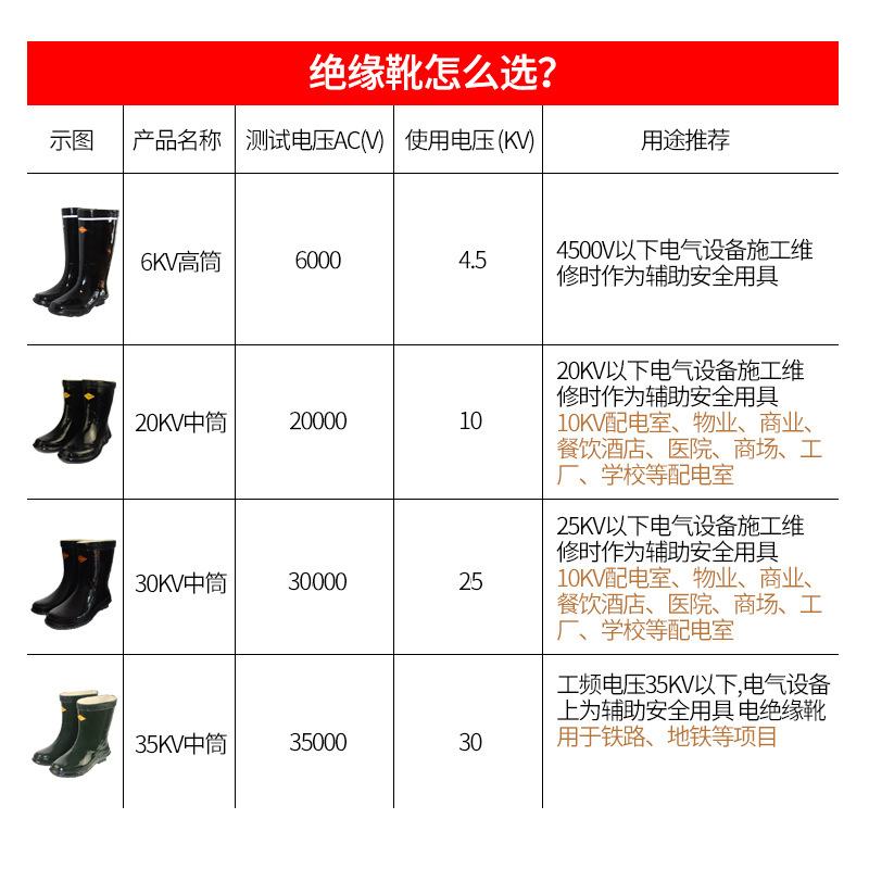 鲁安 35kv绝缘雨靴 高压绝缘鞋 电工防电水鞋 高压绝缘靴子