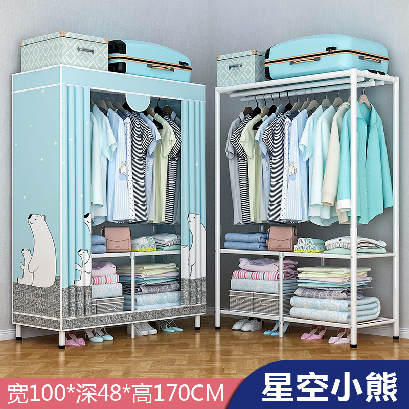 合恒工品布衣柜 家用卧室简易柜钢管加粗固组装全钢架子衣橱收纳出租屋衣柜