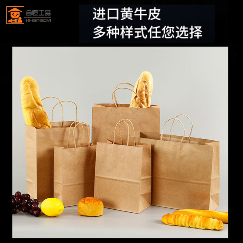 合恒工品 牛皮纸袋 手提纸袋子 外卖打包袋服装购物纸袋