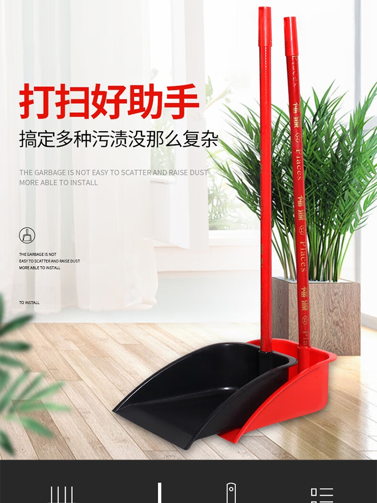 包装清单:1雷璟 扫把簸箕套装垃圾铲 黑色簸箕 配62/80/95杆