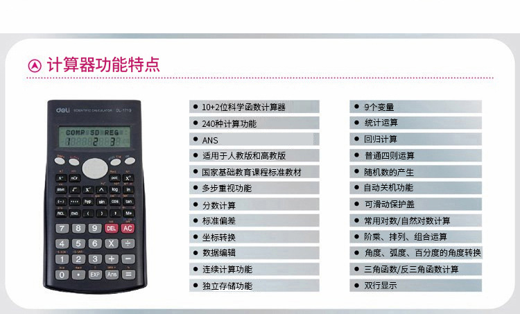 商品名称:得力 deli 科学计算器 科学函数计算器