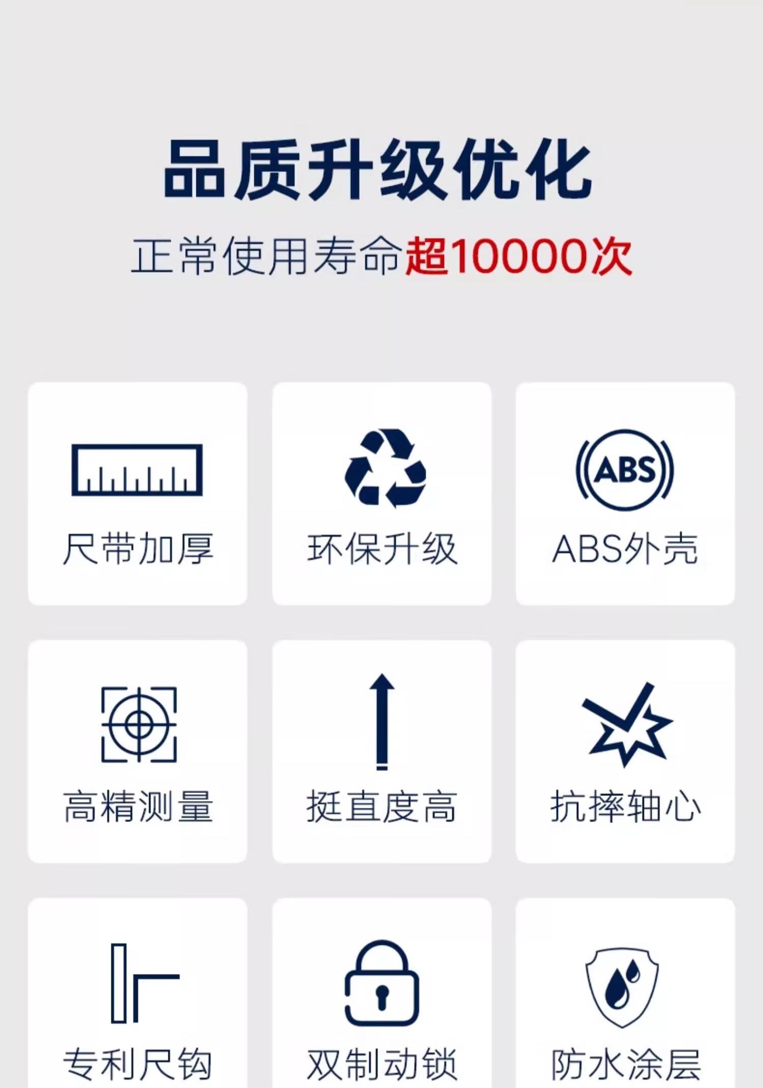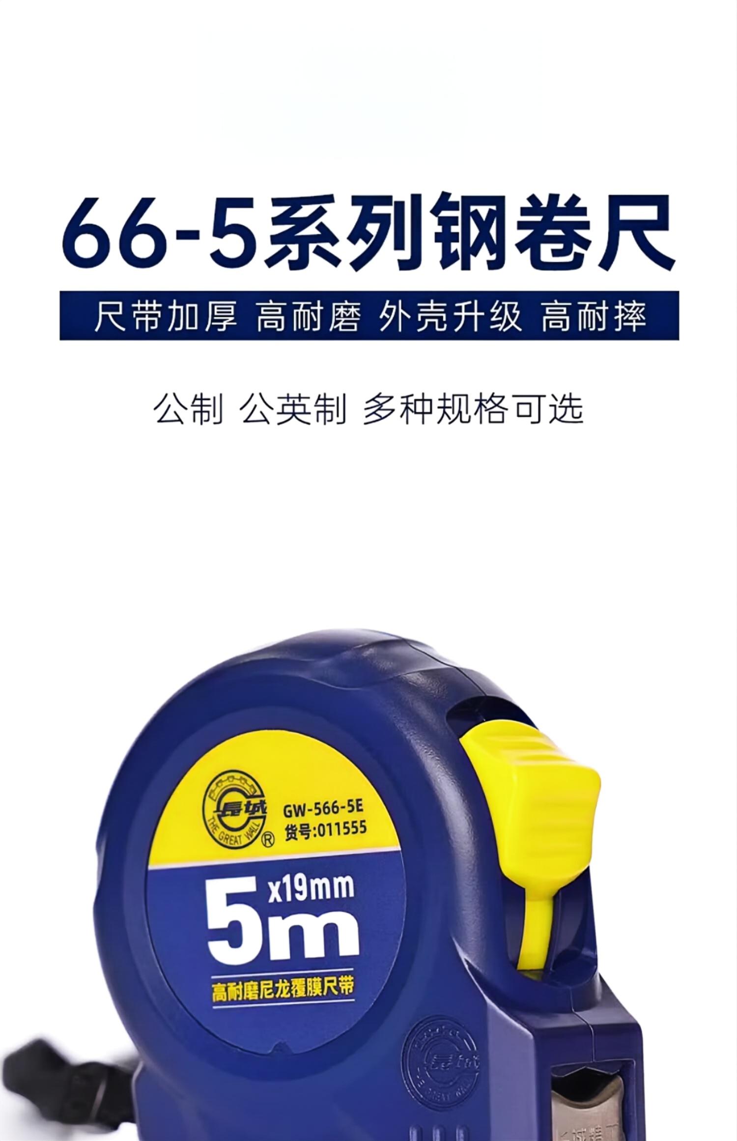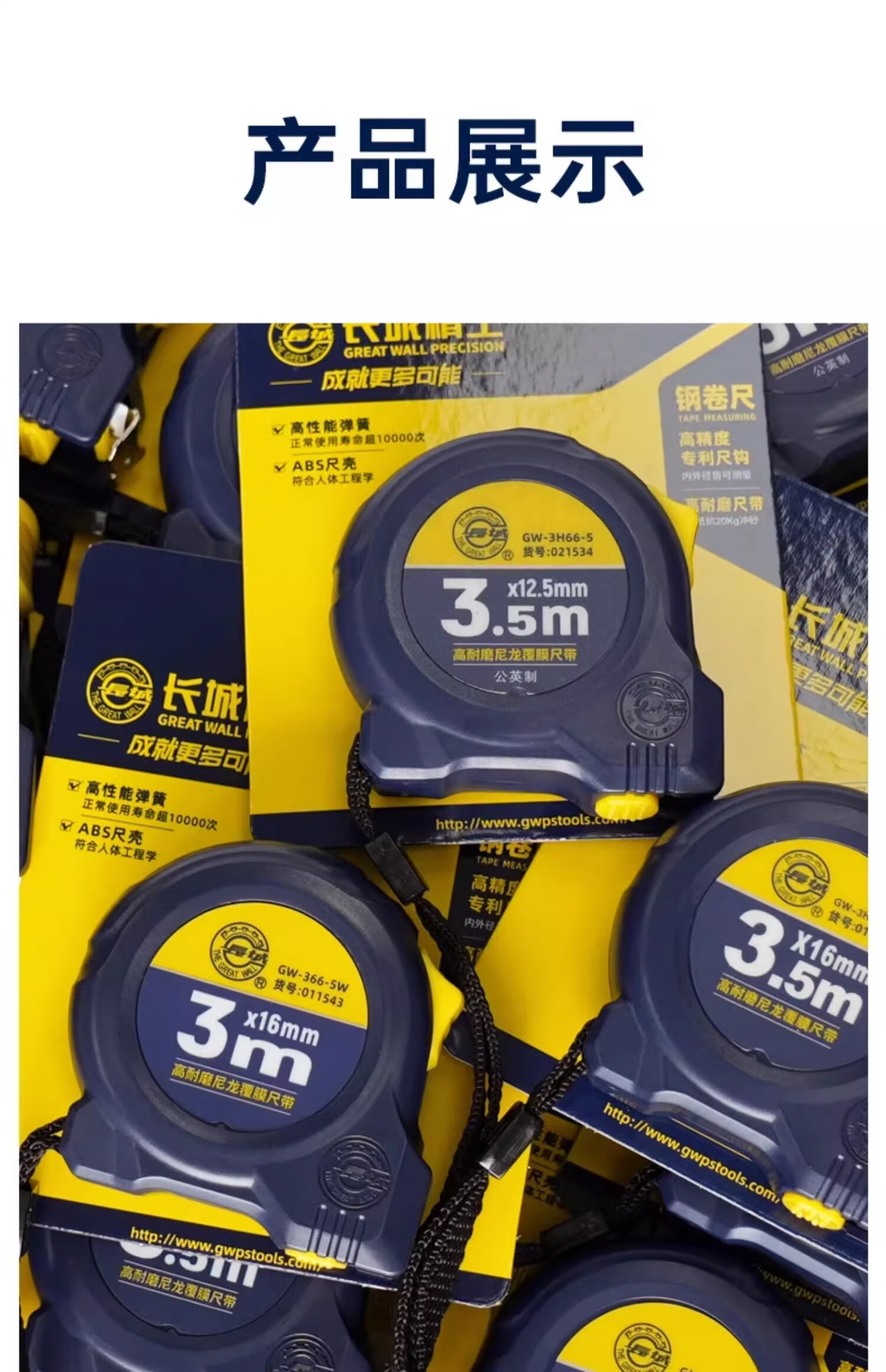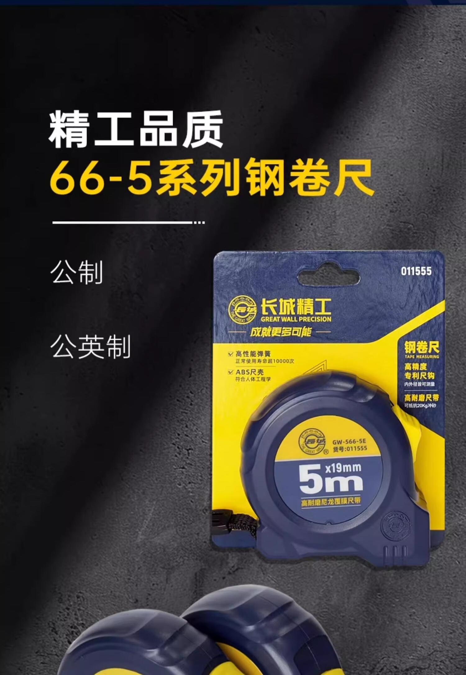 包装清单:1长城精工钢卷尺加厚加硬圈尺塑料 钢带钢卷尺家用耐磨米尺高精度尺子66-5系列盒尺