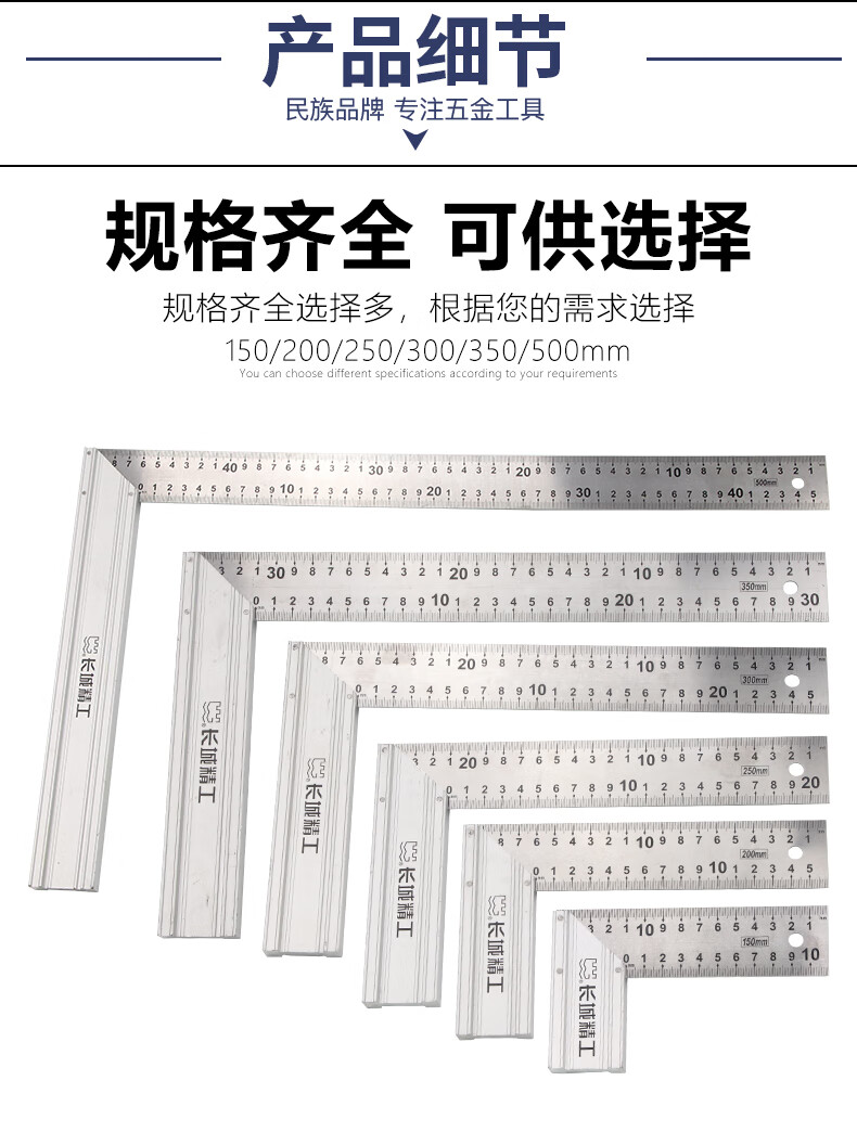 商品名称:长城精工铝合金角尺坚固耐用站立稳定测量精准铝合金高精度加厚钢角尺