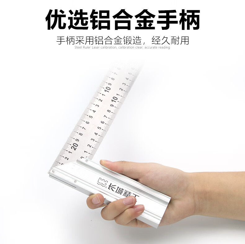 包装清单:1长城精工铝合金角尺坚固耐用站立稳定测量精准铝合金高精度加厚钢角尺