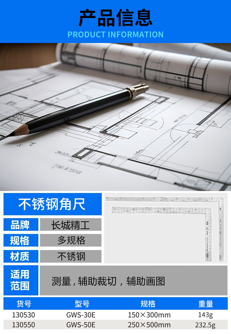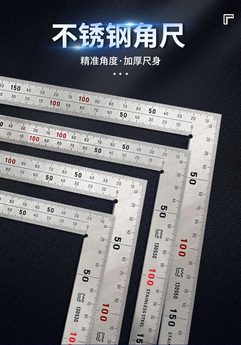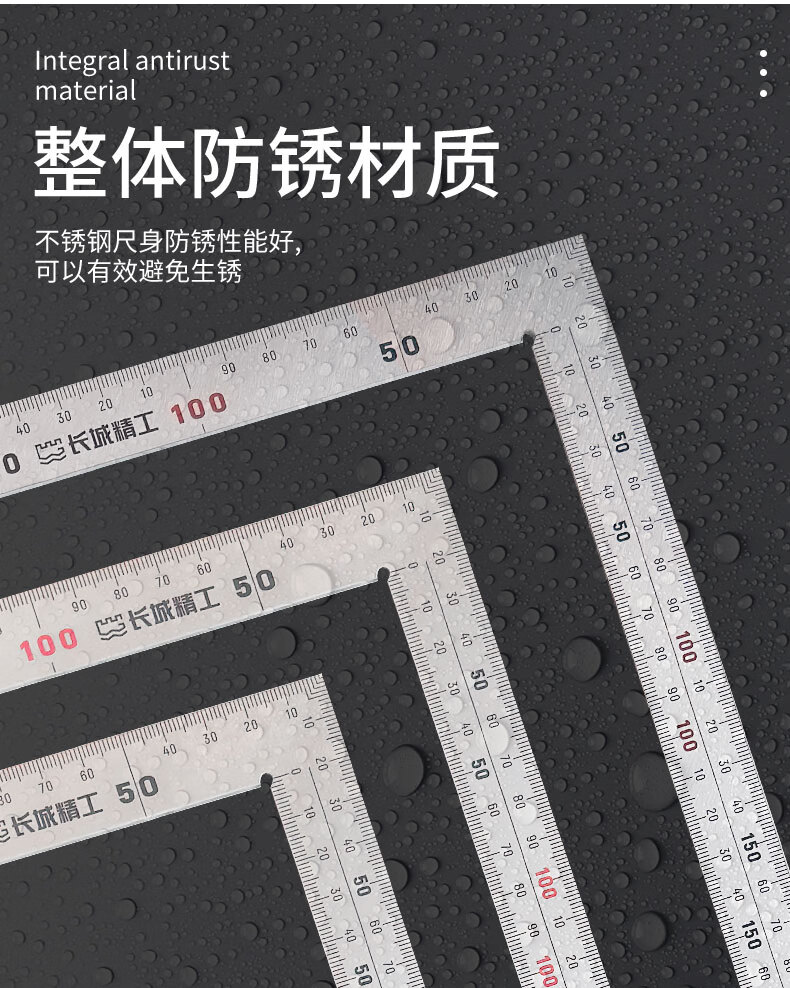 包装清单:1长城精工平扳角尺(拐尺)不锈钢高精度锌合金加厚直尺加厚不锈钢材质防锈耐磨