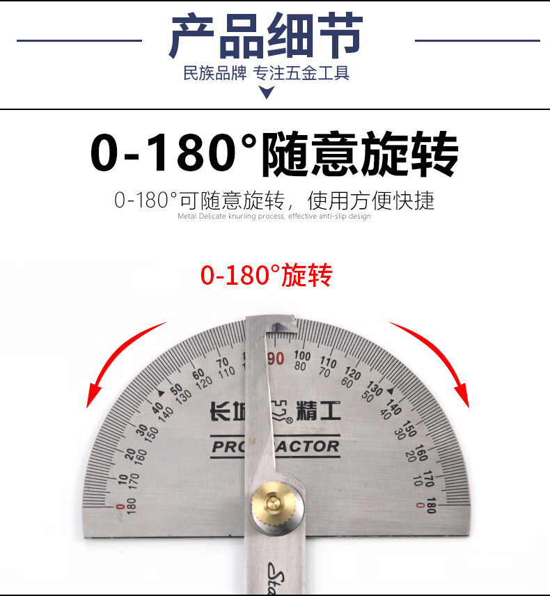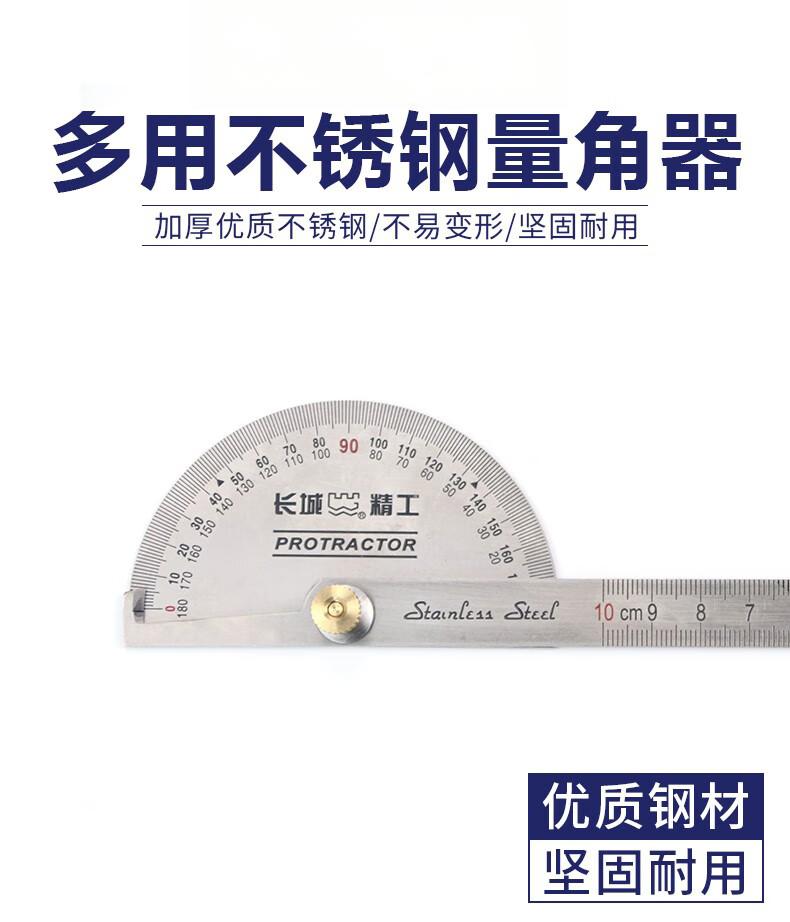 包装清单:1长城精工多用金属量角尺加厚不锈钢材质防锈耐磨多功能角度尺高精度工业