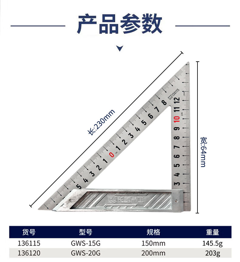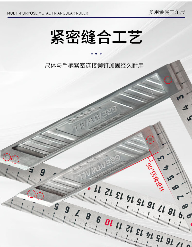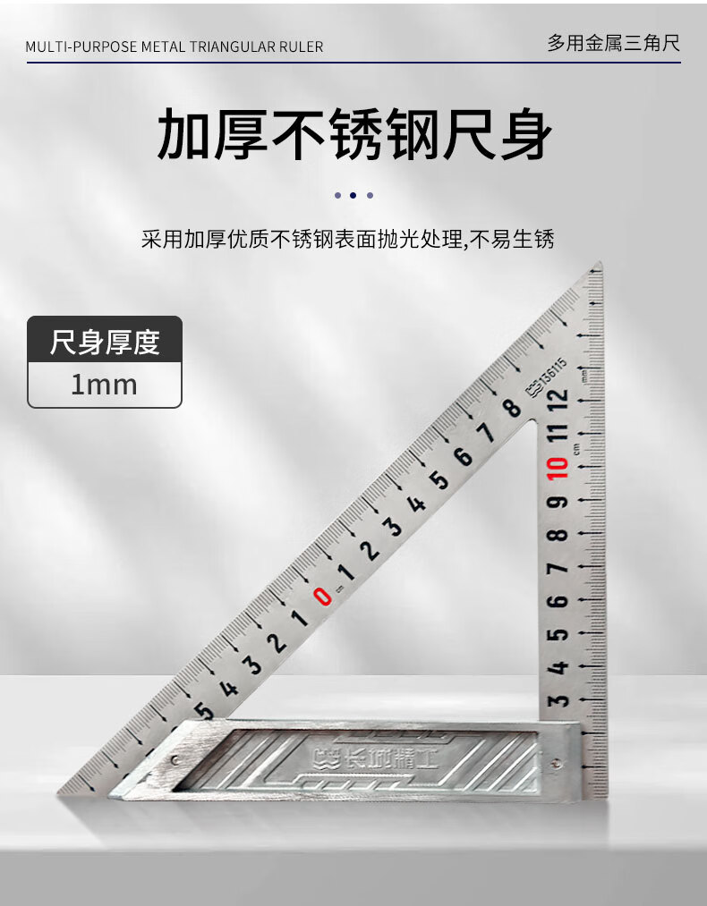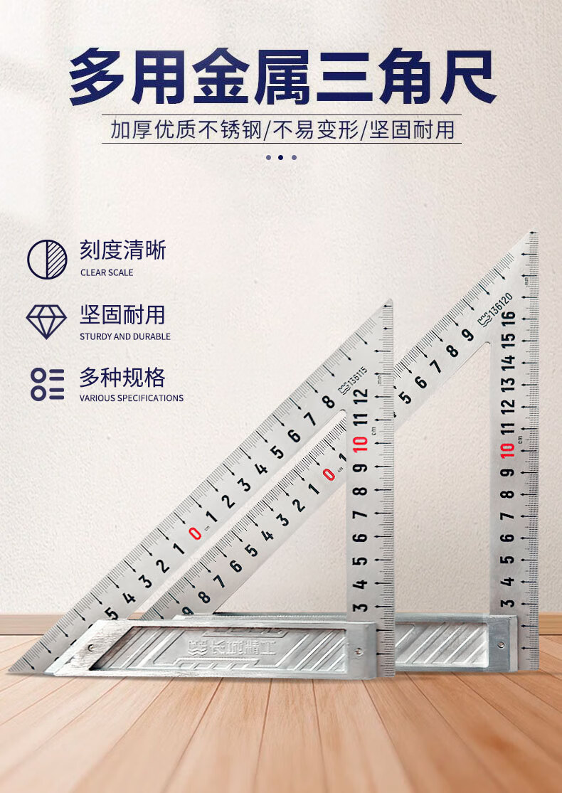 包装清单:1长城精工多用金属三角尺加厚不锈钢材质防锈耐磨不锈钢三角尺