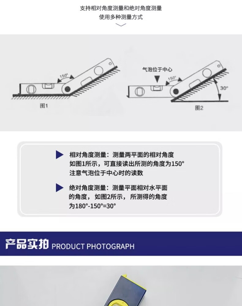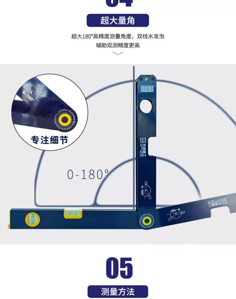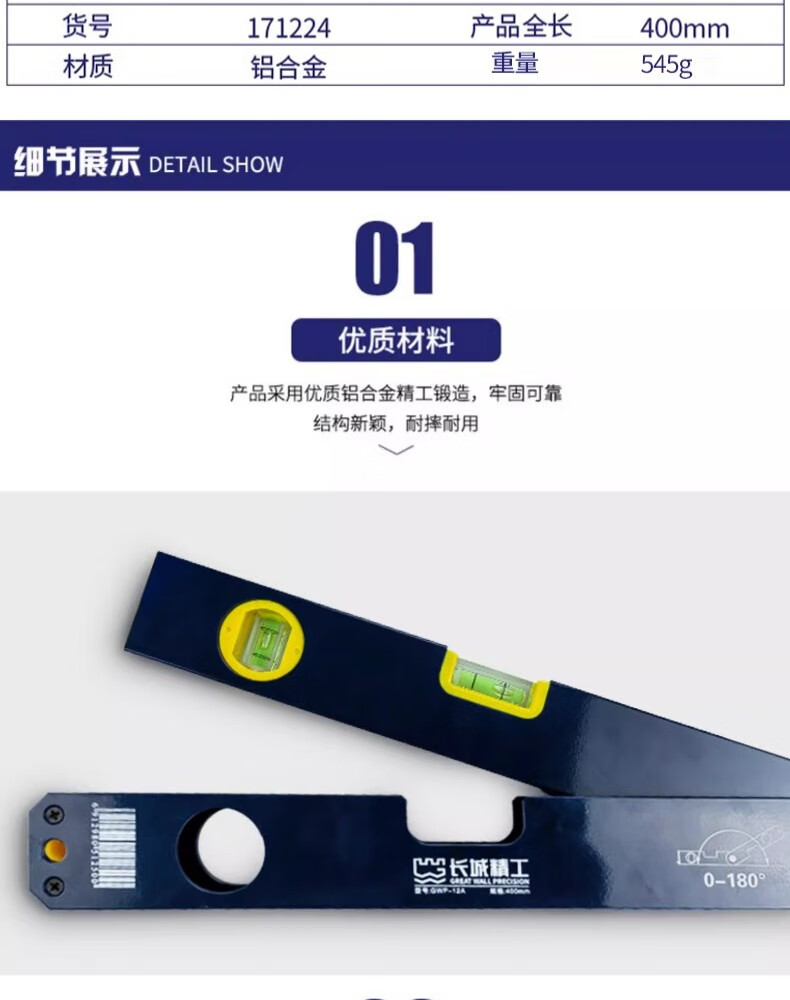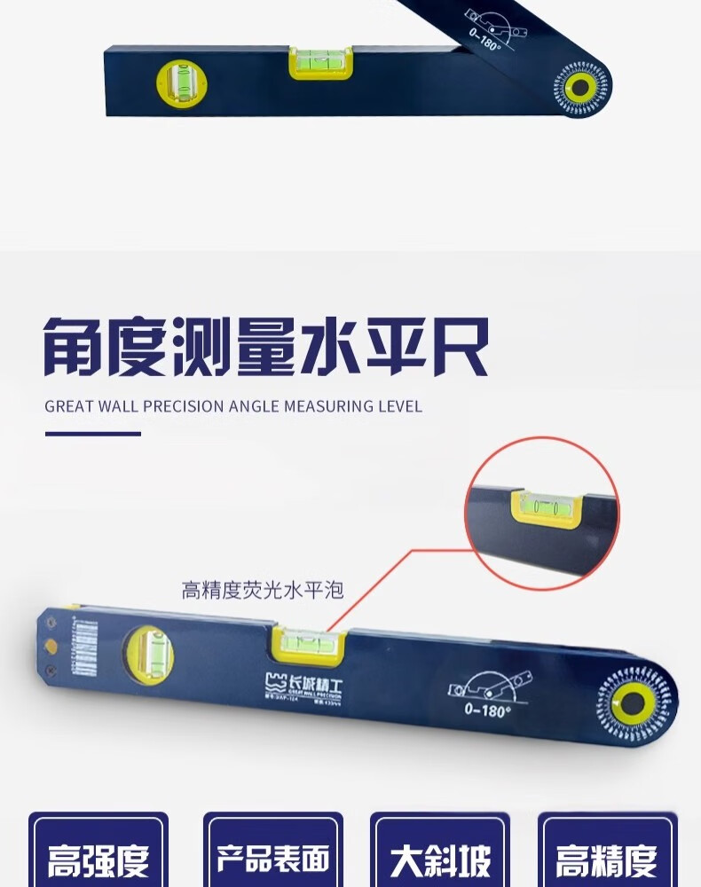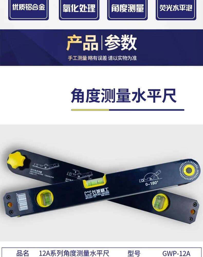 包装清单:1长城精工角度测量水平尺防摔铝合金多功能高精度家用装修平水尺