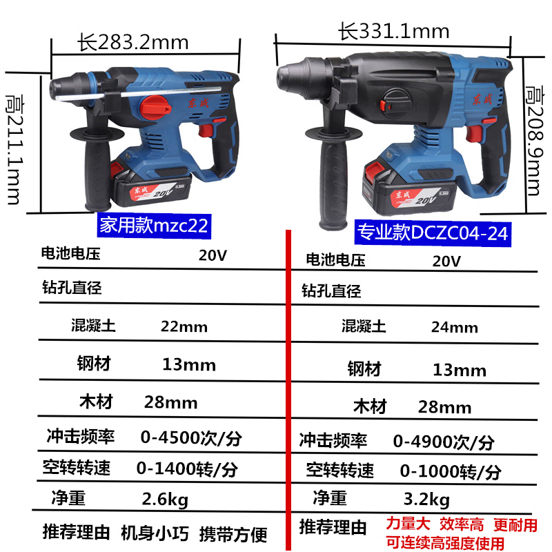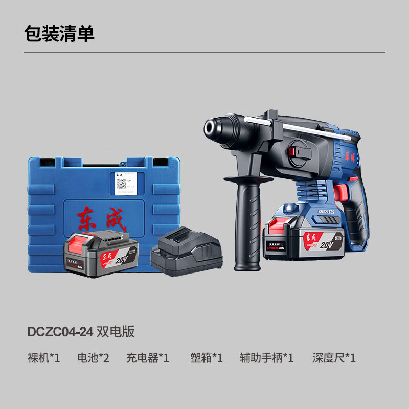 东成充电式无刷电锤DCZC04-24(E型)20V4.0ah*2充电工业级无刷冲击钻电镐电钻三用