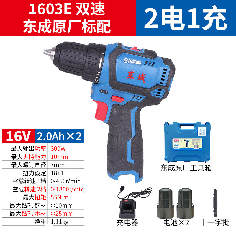 东成充电式无刷起子电钻DCJZ1603(E型)(55N.M)16V2.0ah*2电动工具多功能东城螺丝起子机