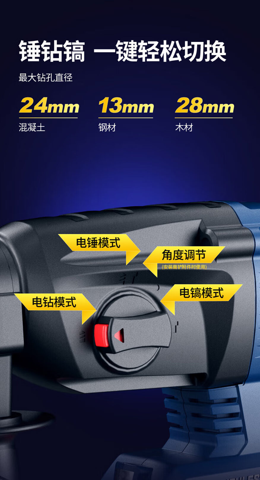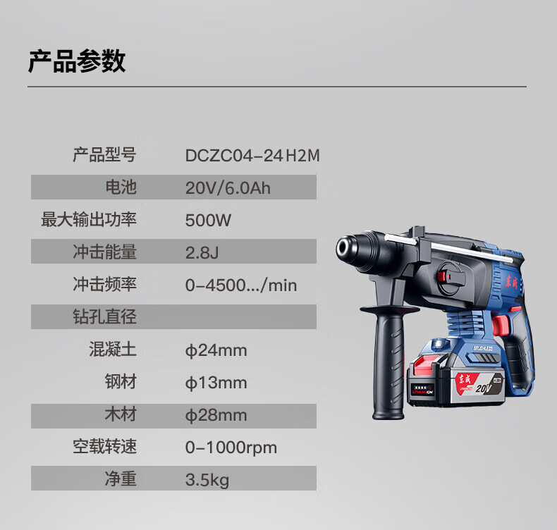 商品名称:东成充电式无刷电锤DCZC22(B型)20V4.0ah*2三用电捶电镐东城