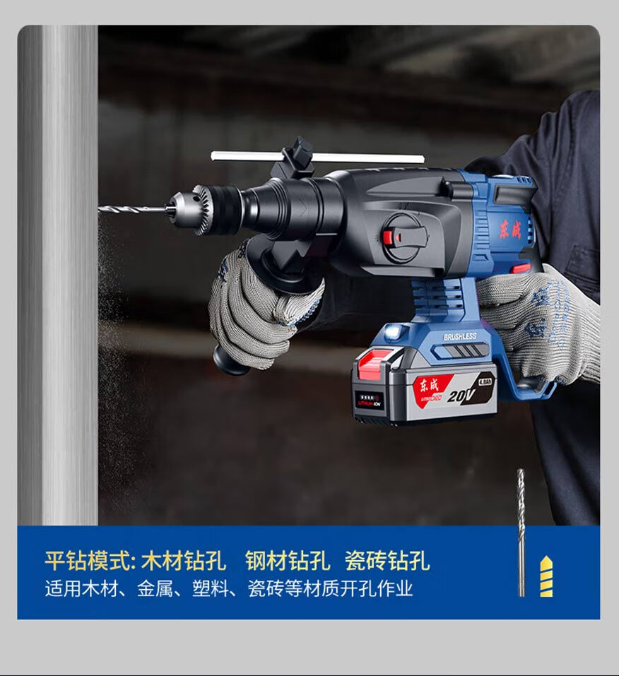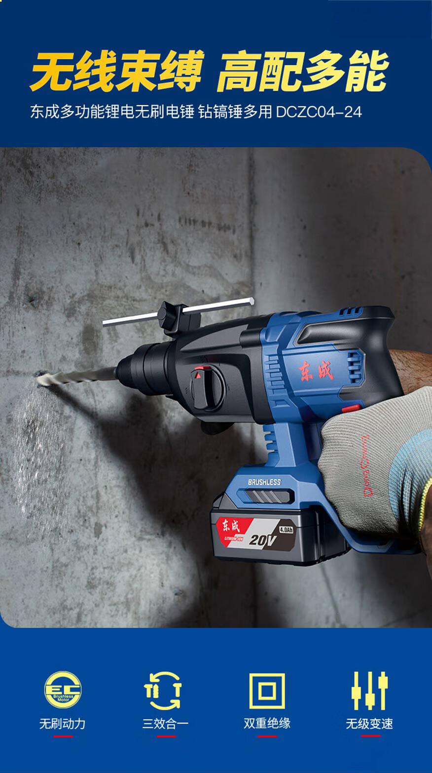 东成充电式无刷电锤DCZC22(B型)20V4.0ah*2三用电捶电镐东城