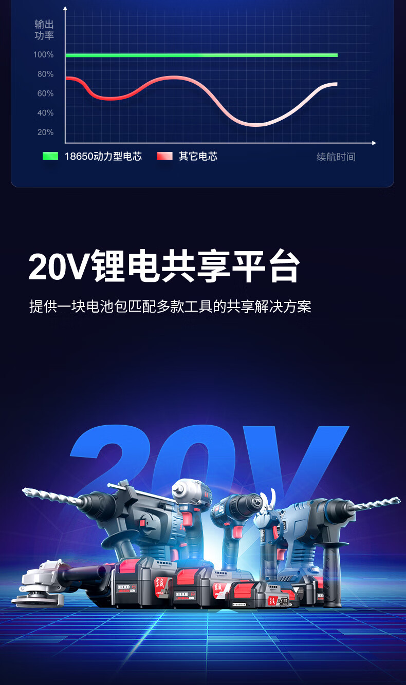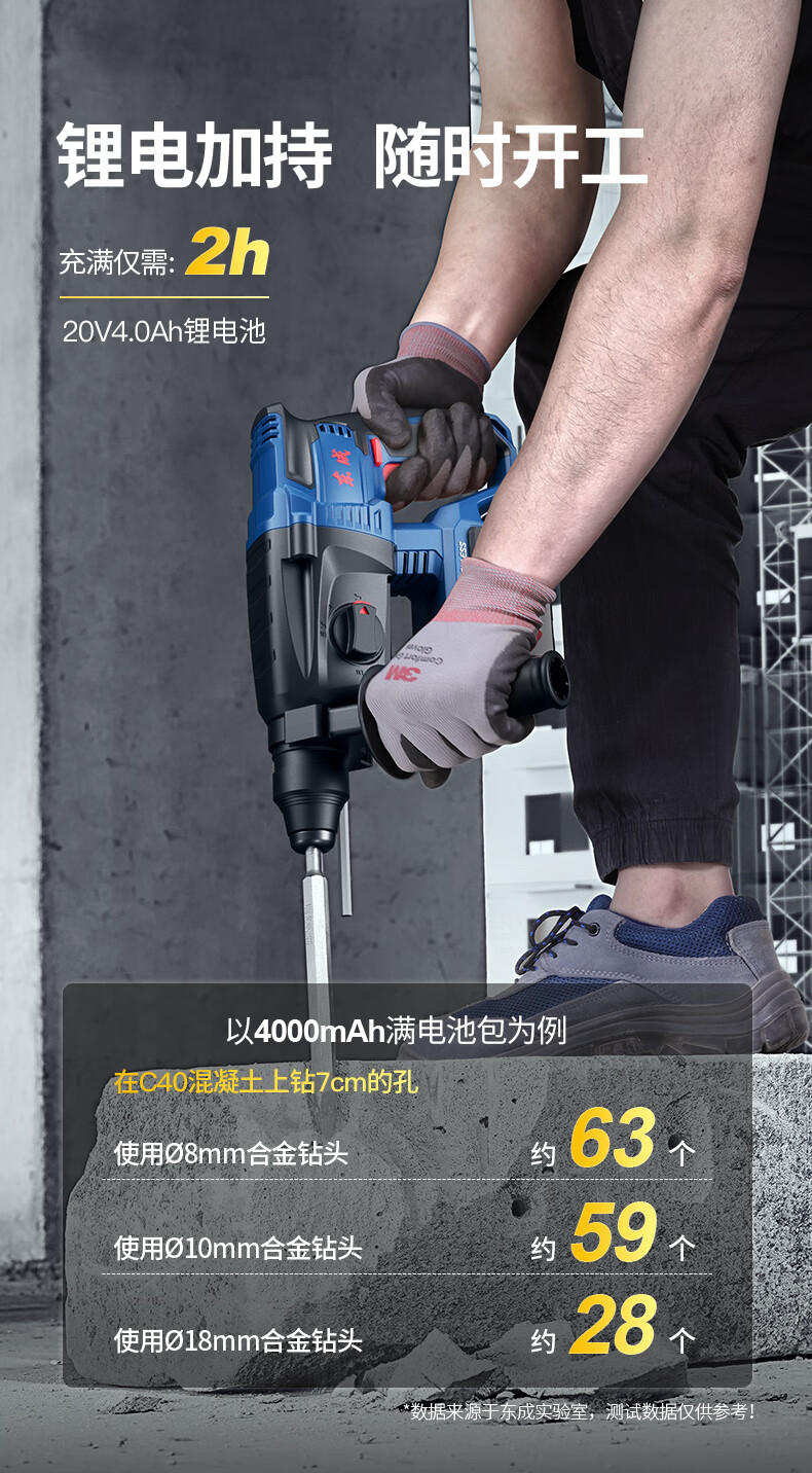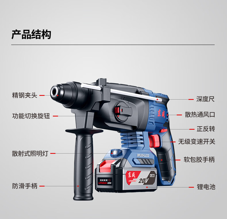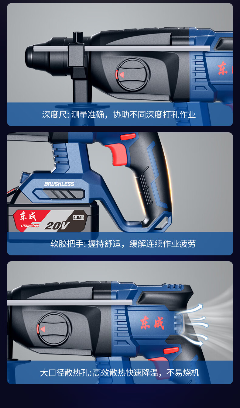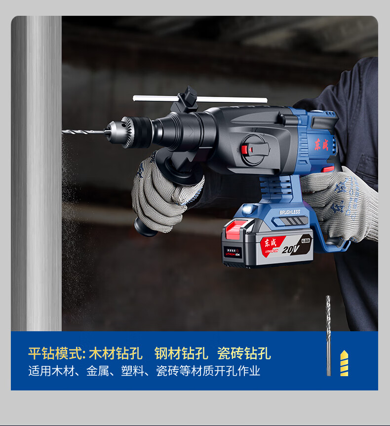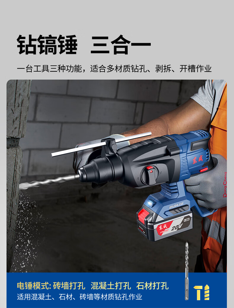 东成充电式无刷电锤DCZC04-24(E型)20V4.0ah*2充电工业级无刷冲击钻电镐电钻三用