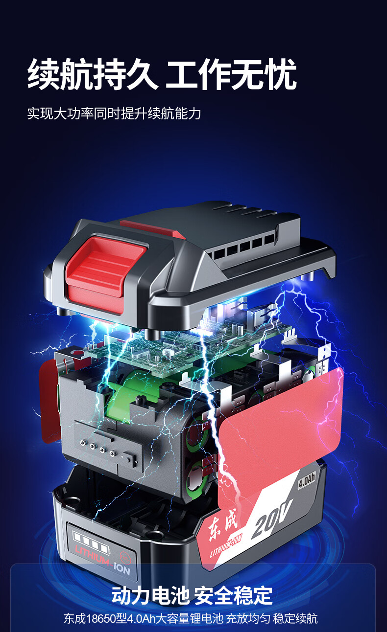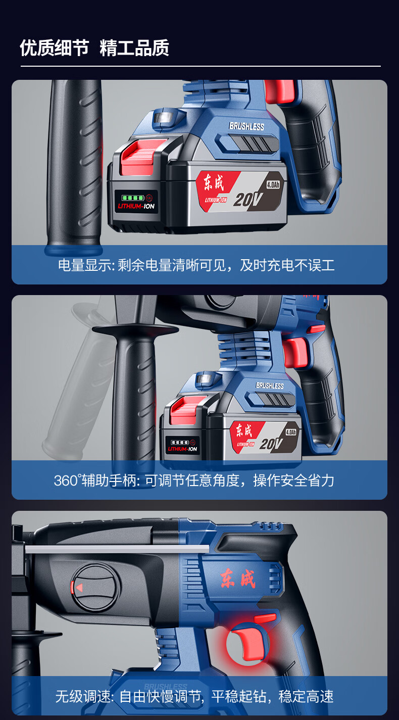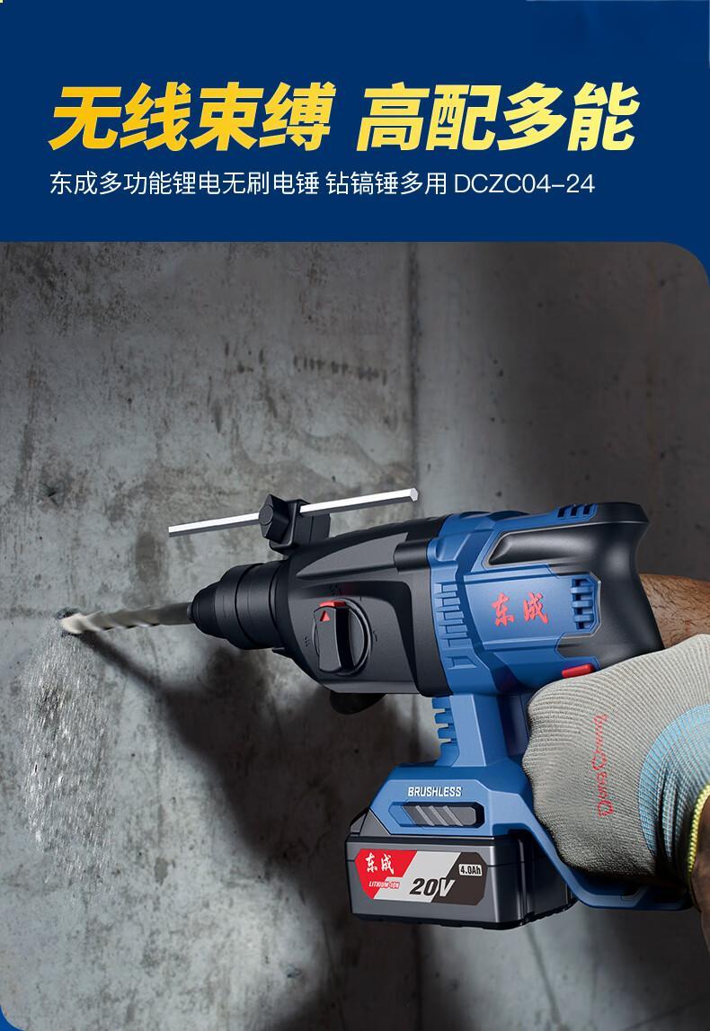 包装清单:1东成充电式无刷电锤DCZC04-24(E型)20V4.0ah*2充电工业级无刷冲击钻电镐电钻三用