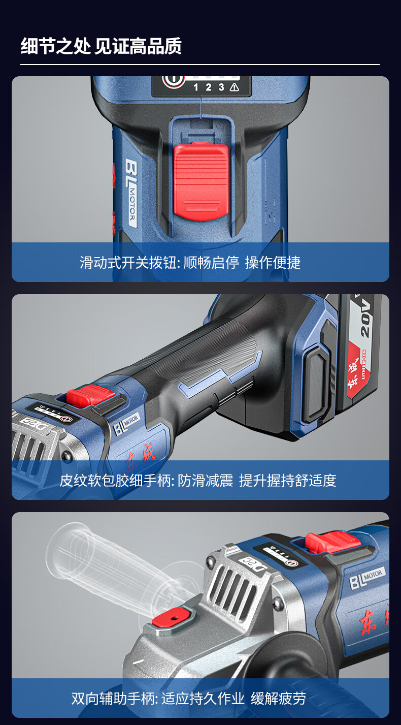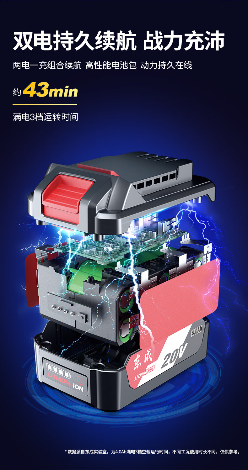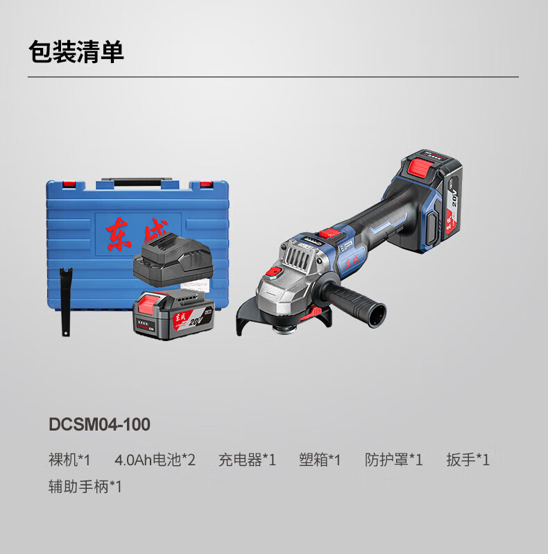 包装清单:1东成充电式无刷角磨机DCSM04-100(E型)20V4.0ah*2锂电打磨机切割机抛光机家用角磨机