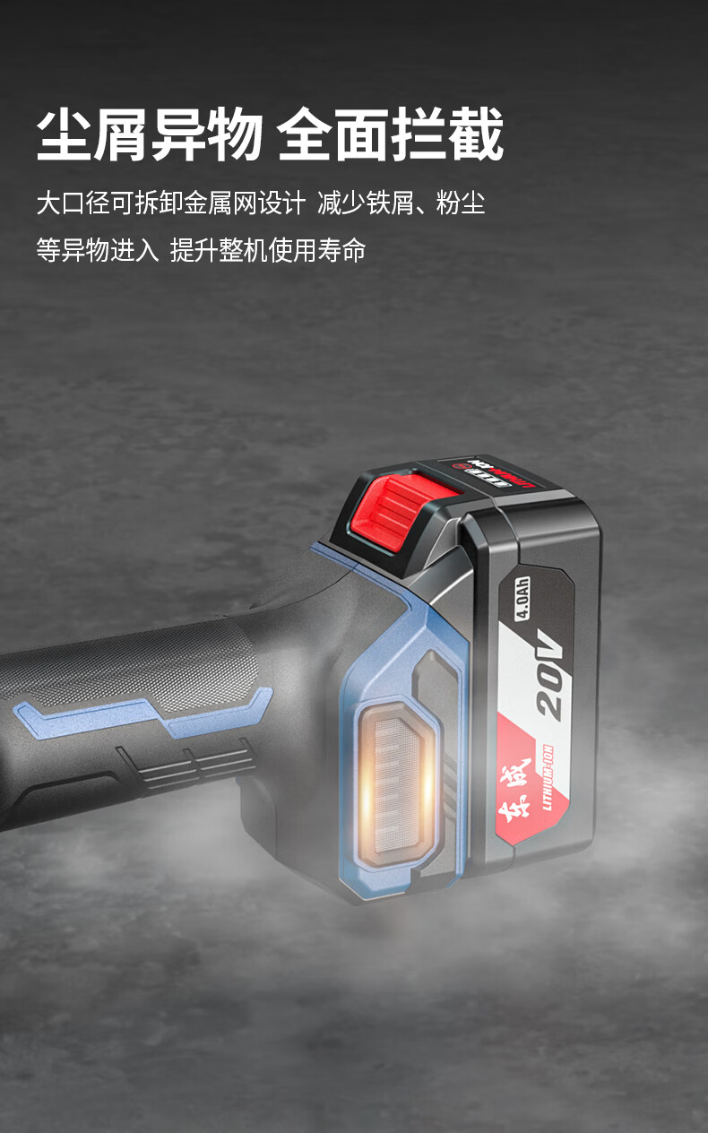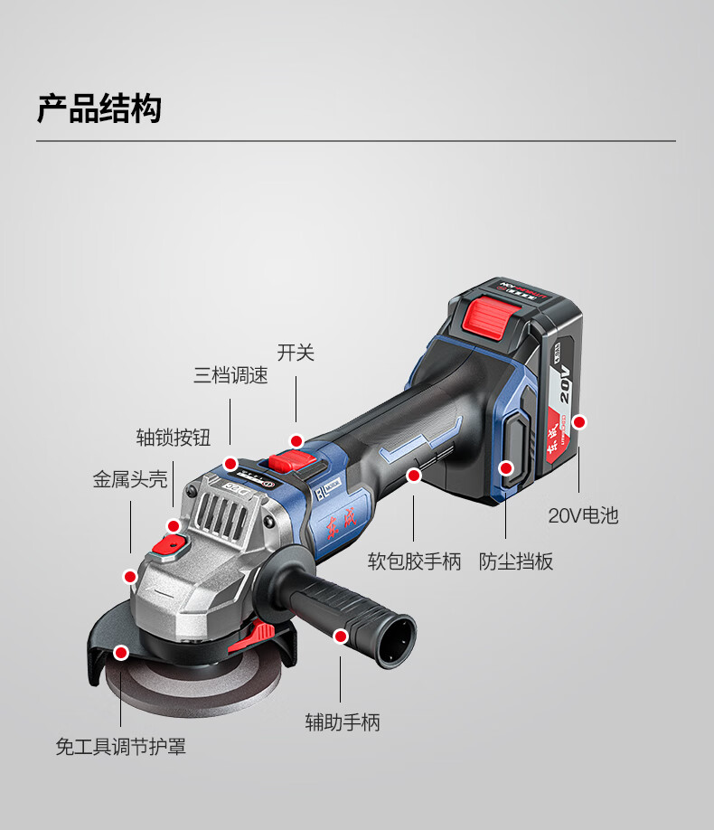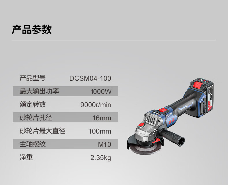 商品名称:东成充电式无刷角磨机DCSM04-100(E型)20V4.0ah*2锂电打磨机切割机抛光机家用角磨机