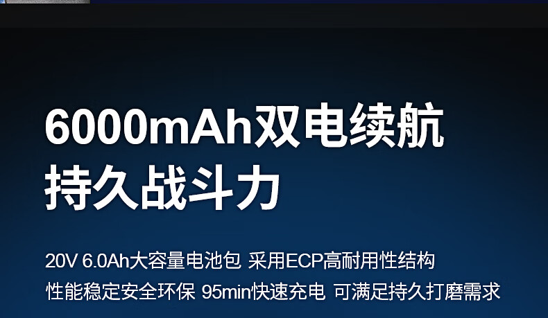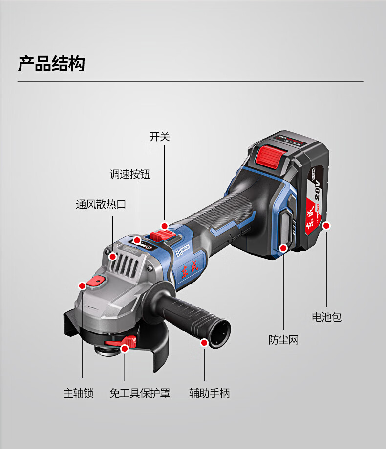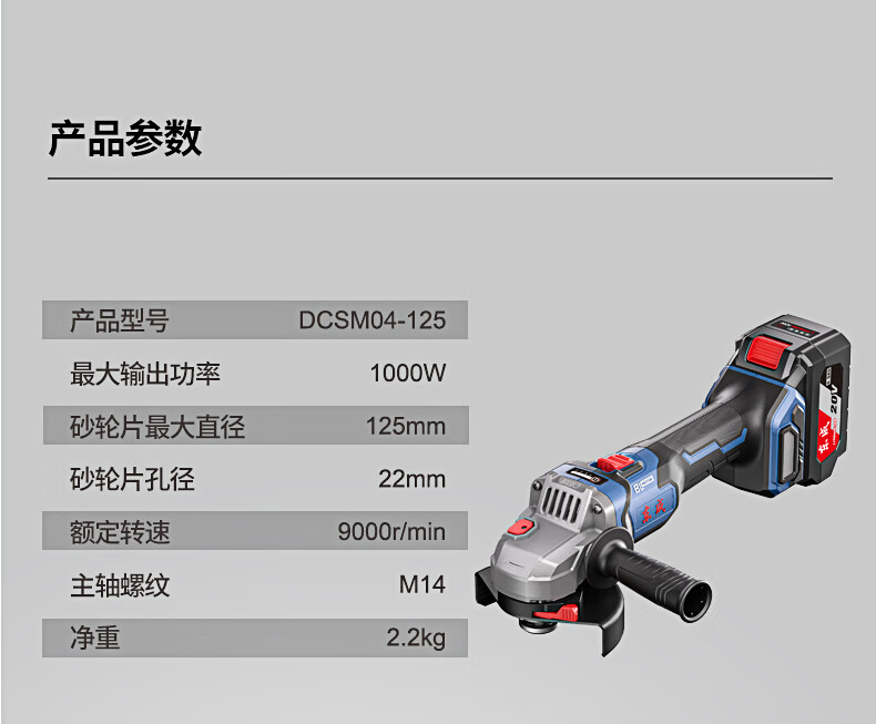 商品名称:东成充电式无刷角磨机DCSM04-125(H2K型)20V6.0ah*2角磨机锂电磨光机充电式切割机