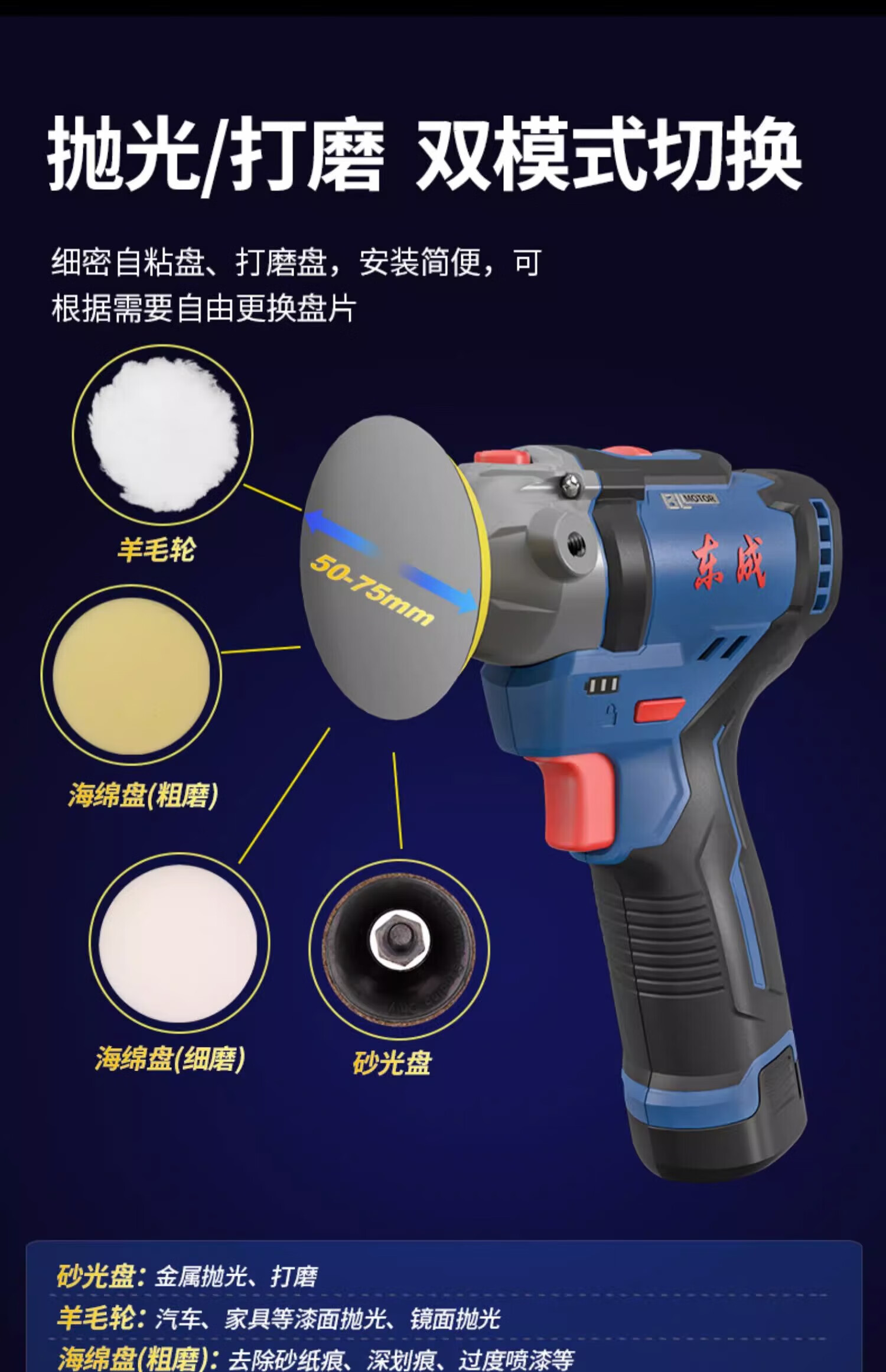 商品名称:东成充电式无刷抛光机DCSP75(EK型)12V2.0ah*2