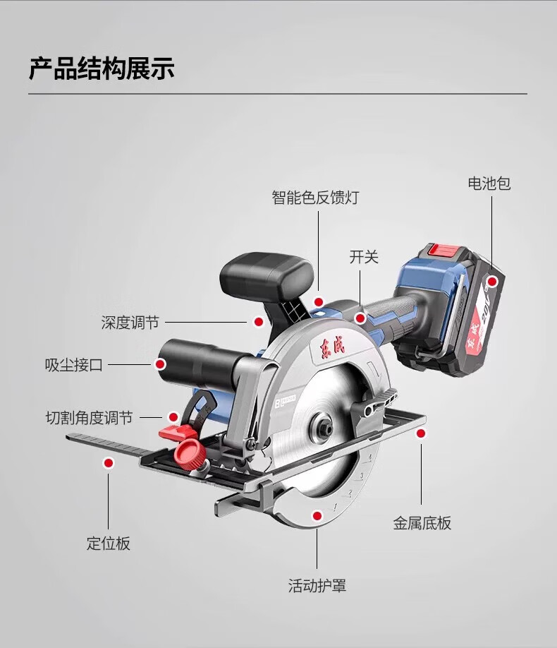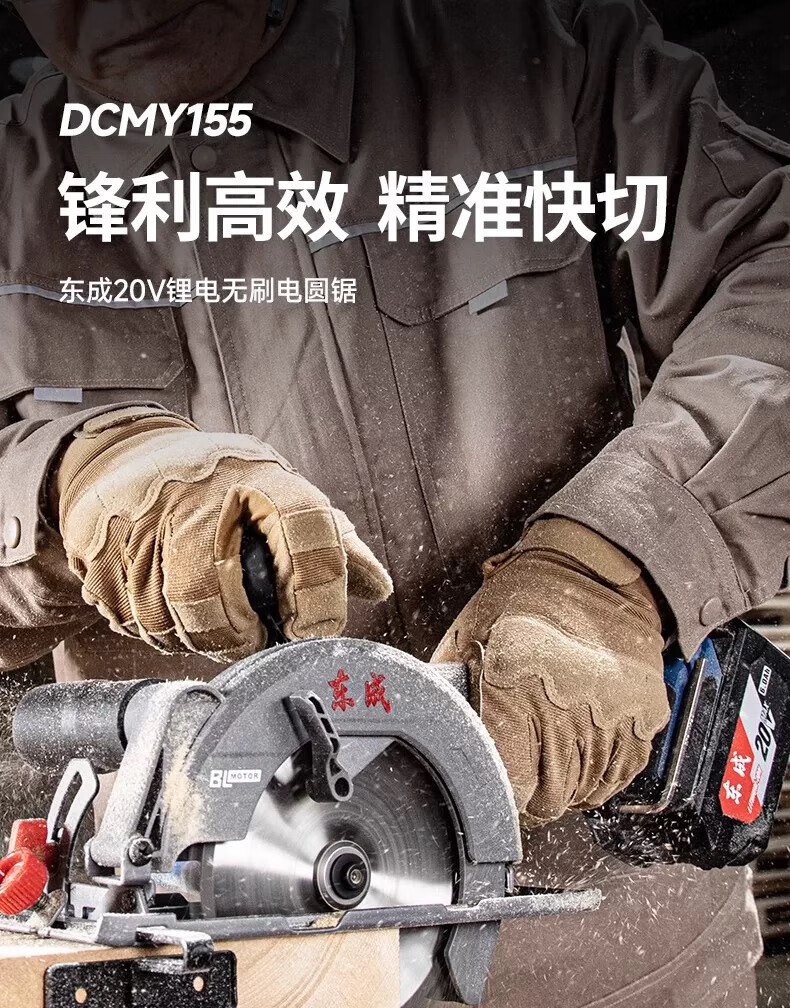 包装清单:1东成充电式无刷电圆锯DCMY155(HM型)20V6.0ah单电手提切割机