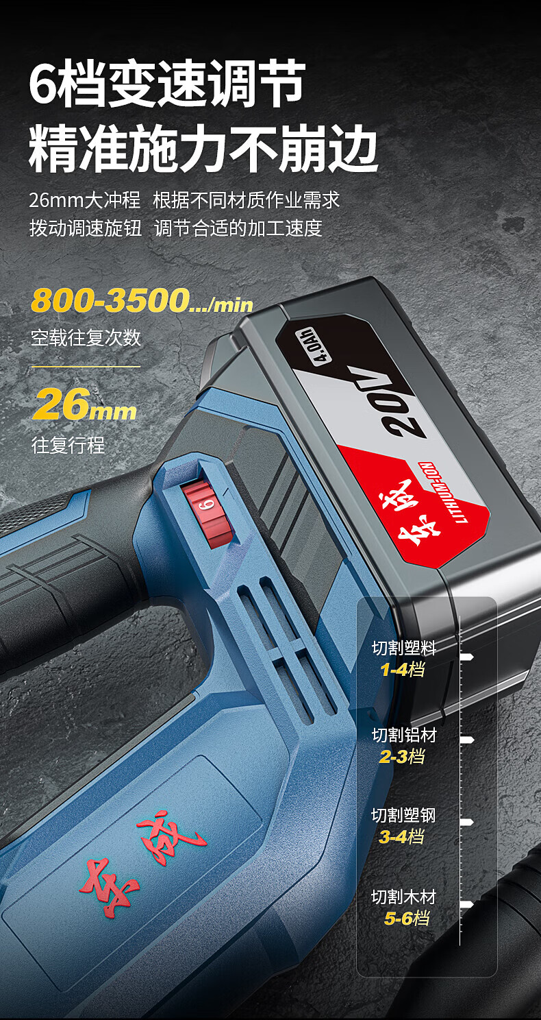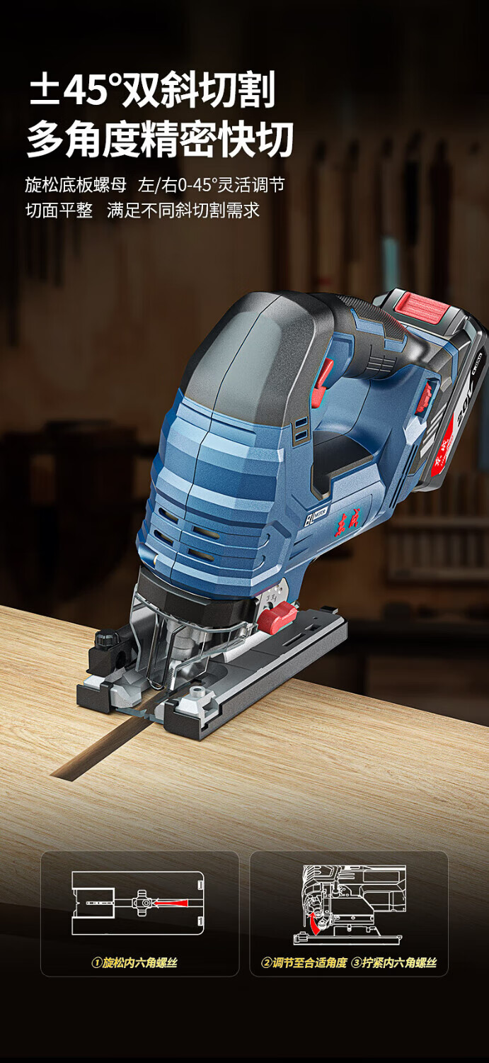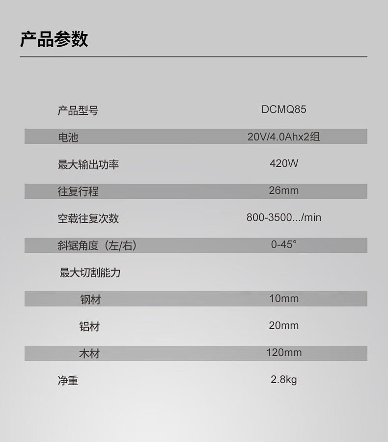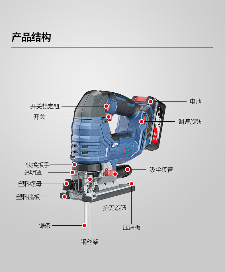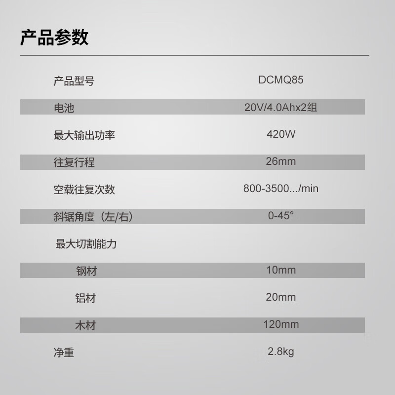 商品名称:东成充电式无刷曲线锯DCMQ85(E型)20V4.0ah*2充电式手电锯多功能