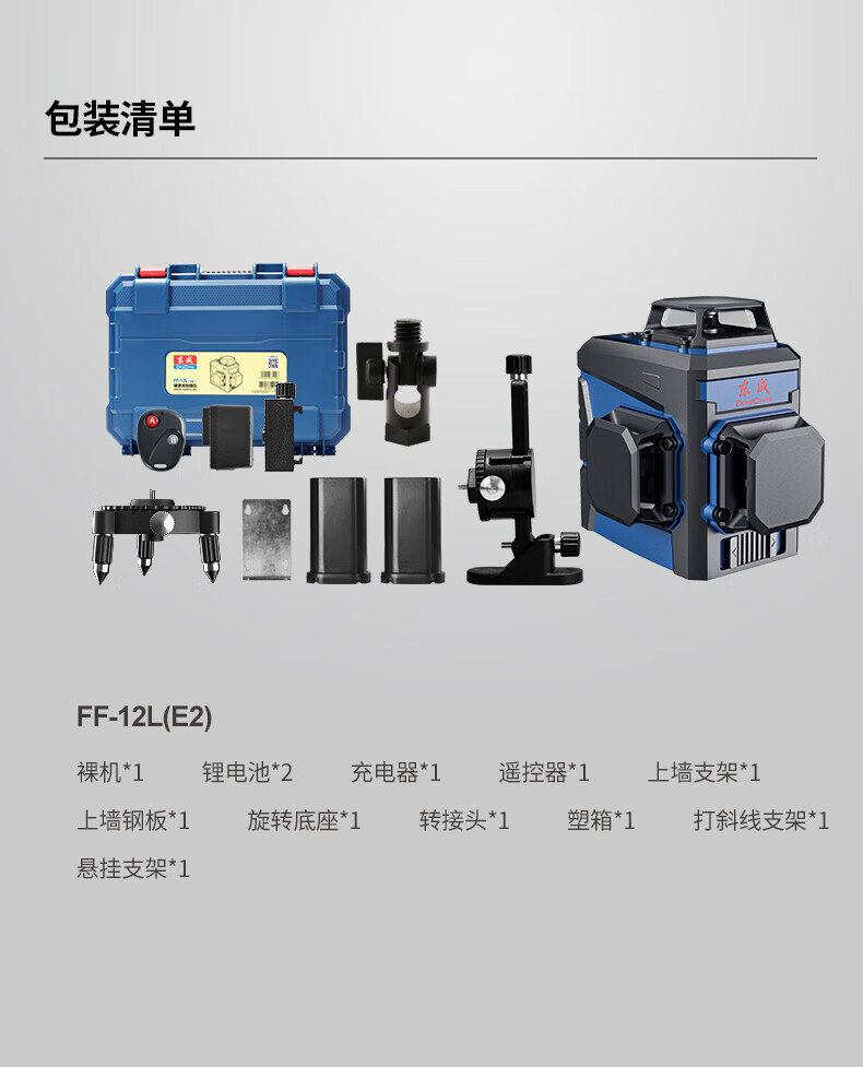 包装清单:1东成绿激光投线仪FF-12L(E2型)(不含三脚架) 地面水平仪贴墙仪无线遥控水平仪贴地仪