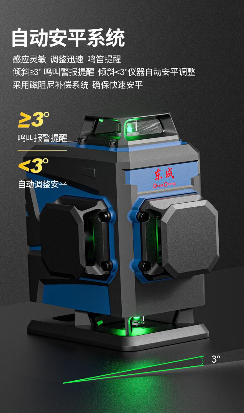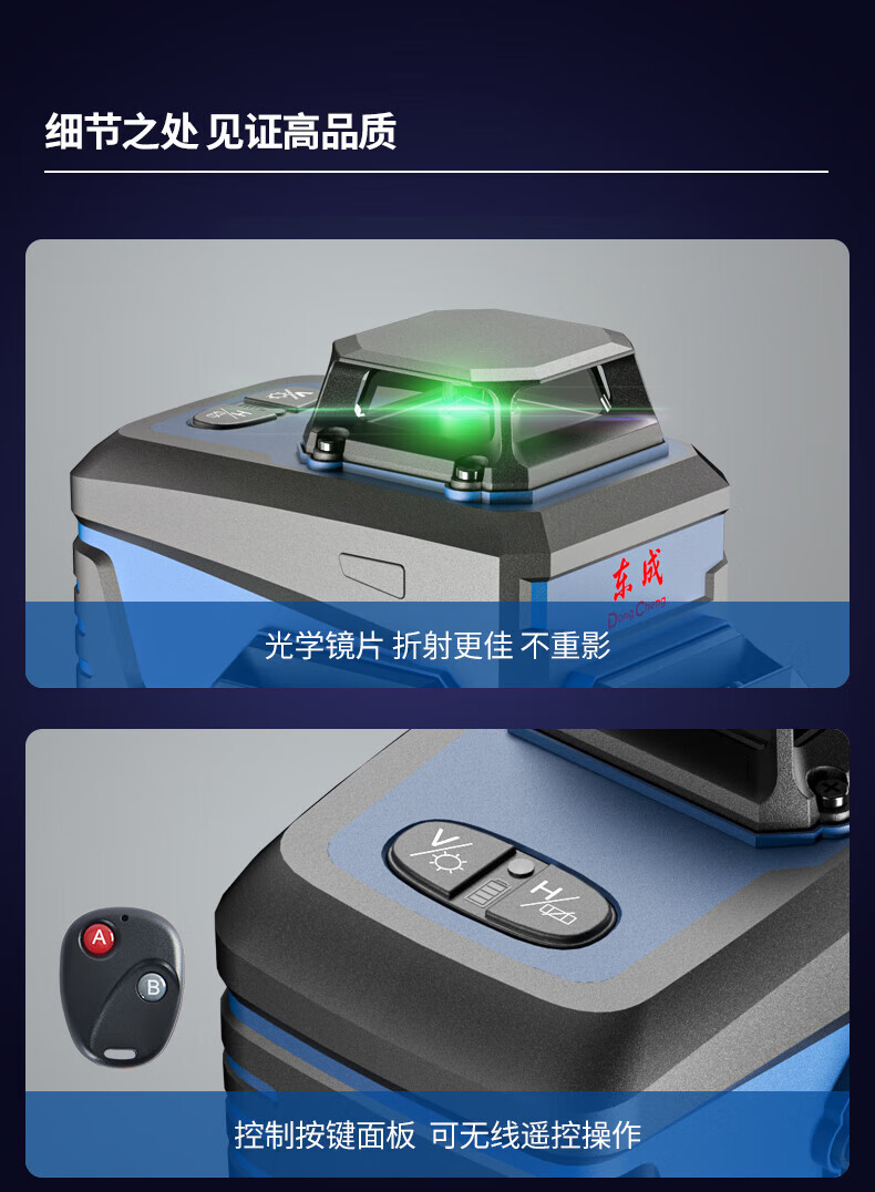 包装清单:1东成绿激光投线仪FF02-12L(E2型)(不含三脚架) 墙面无线遥控水平仪贴地仪