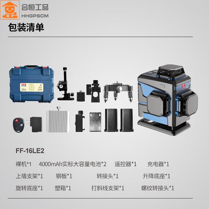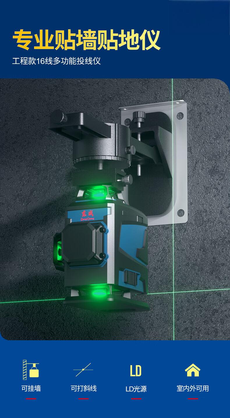 包装清单:1东成绿激光投线仪FF-16L(E2型)(不含三脚架)贴墙仪无线遥控水平仪贴地仪