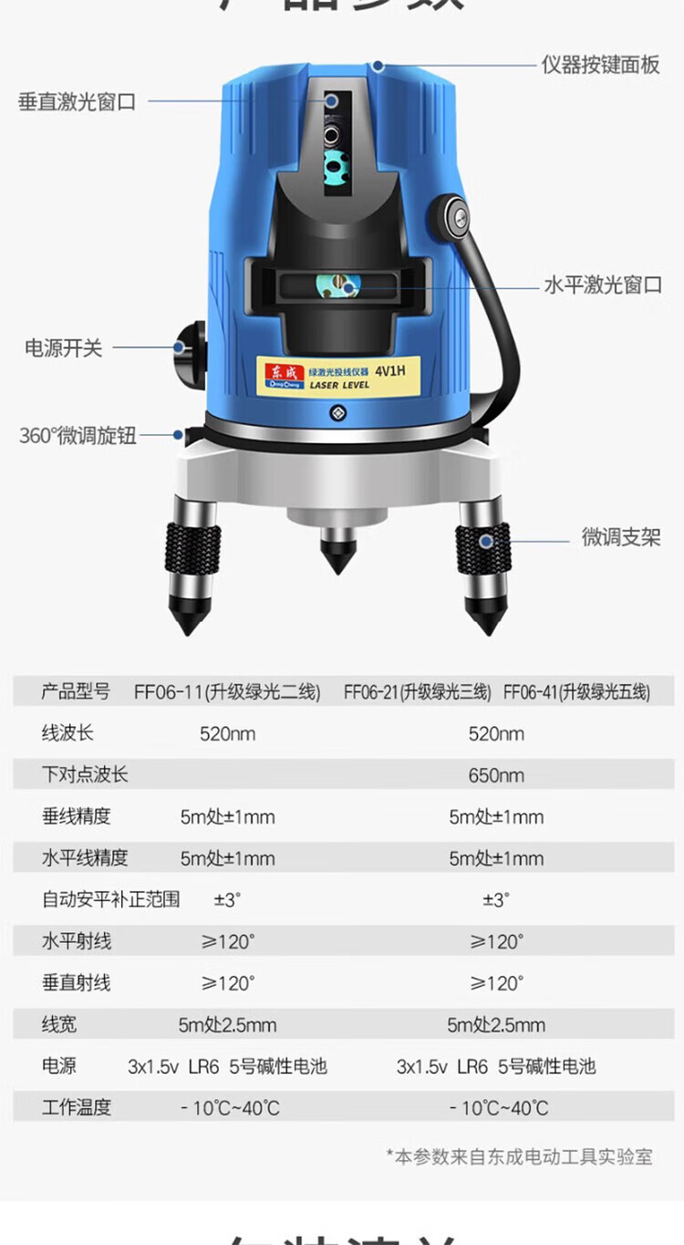商品名称:东成绿激光投线仪FF06-41(E2型)(不含三脚架)