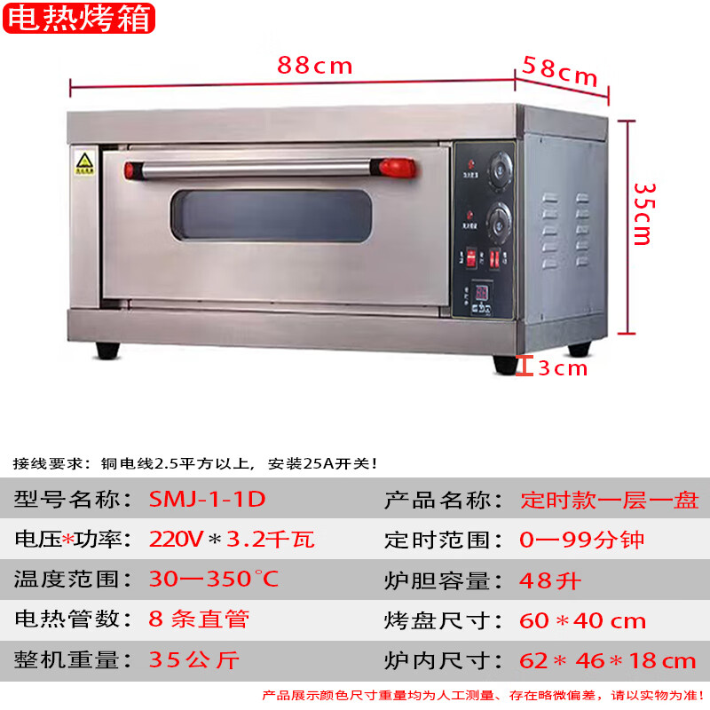 冠鹰烤箱一层两盘不锈钢电烤箱商用面包蛋糕烤饼披萨烘焙大容量燃气大烤炉