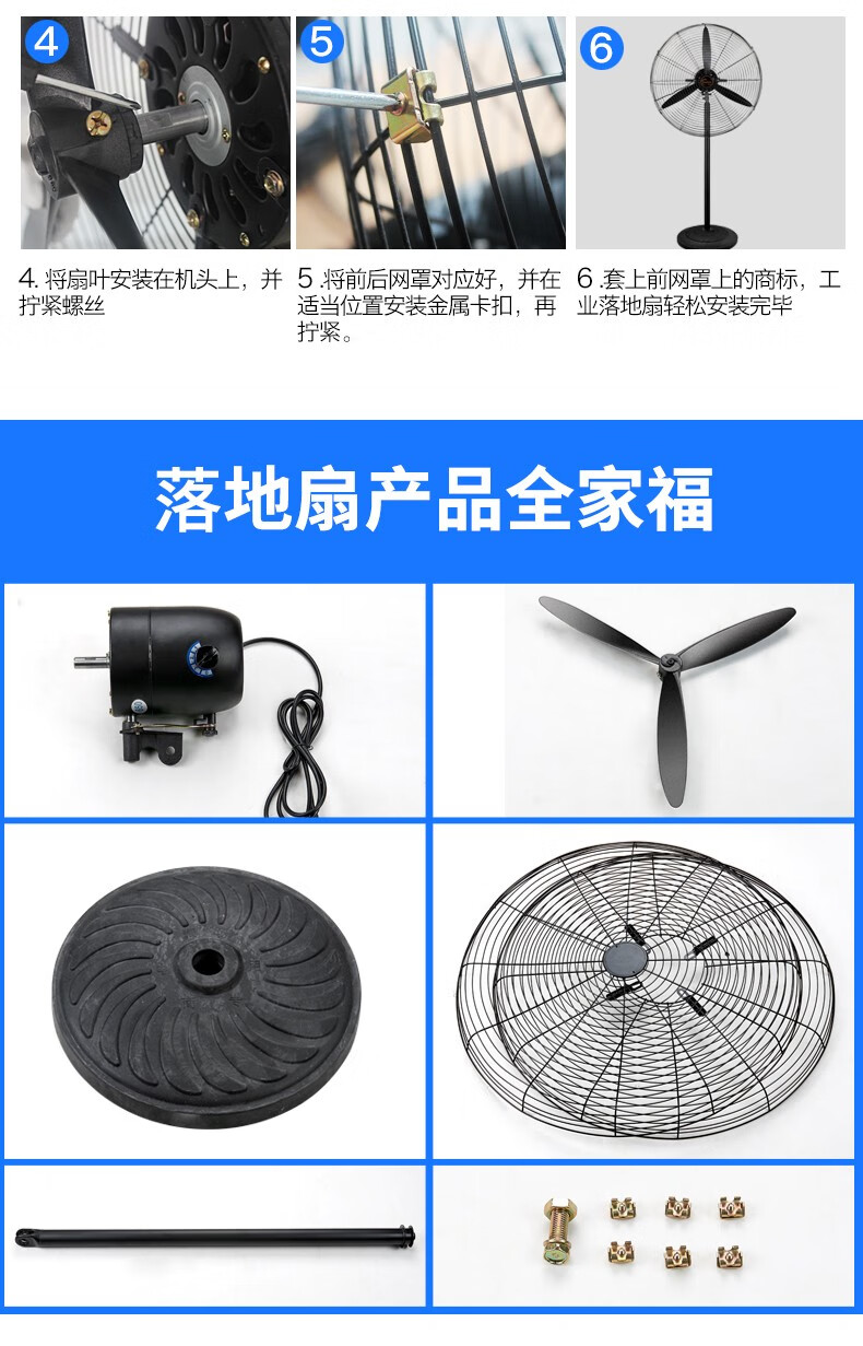 包装清单:1丰莱落地扇工业风扇电风扇落地扇牛角扇大功率大风力强力大风扇工厂车间商用