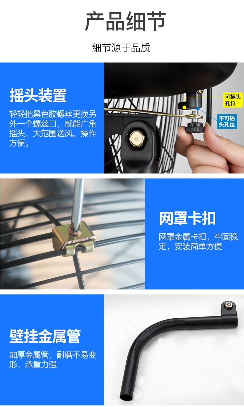 商品规格:功率:210w 500牛角扇 左右摇头 三叶片 伞面直径750MM 20寸