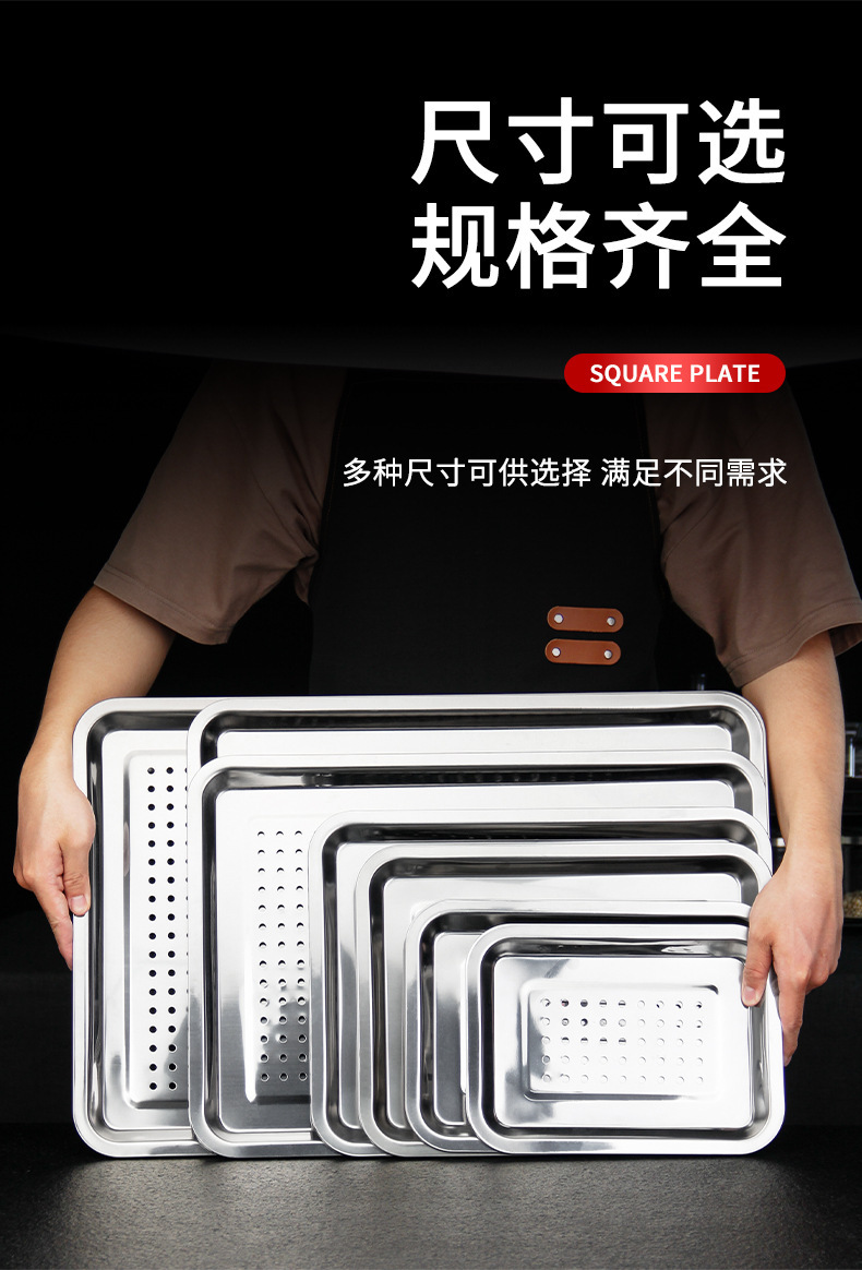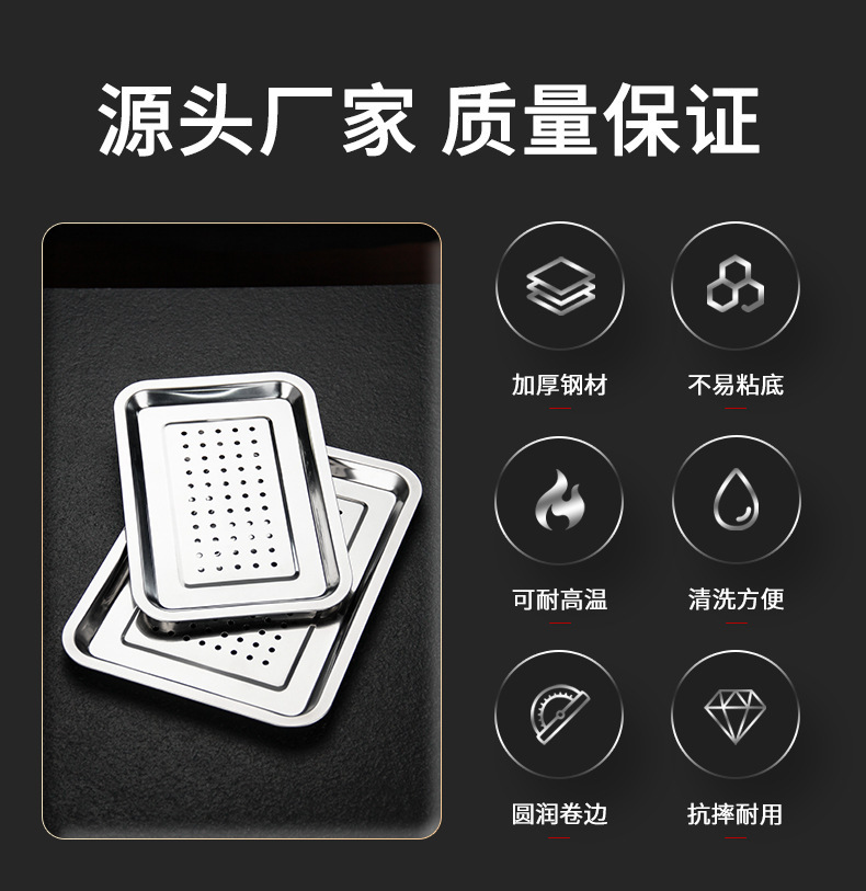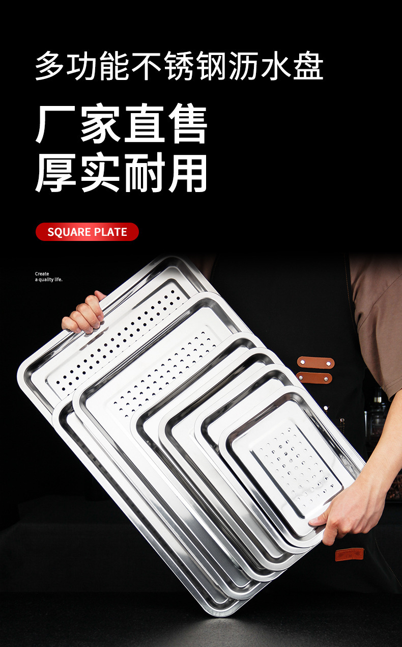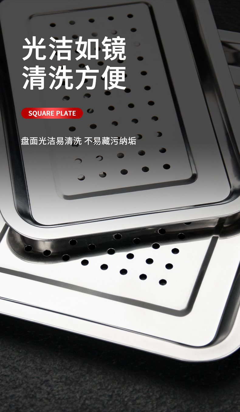 包装清单:1合恒工品不锈钢茶盘冲孔过滤储水盘沥水盘不锈钢方盘托盘烧烤盘