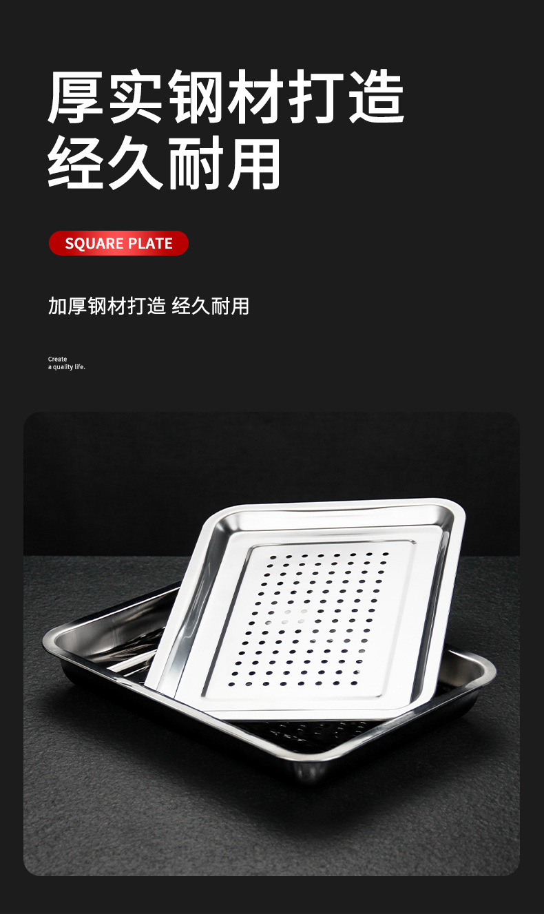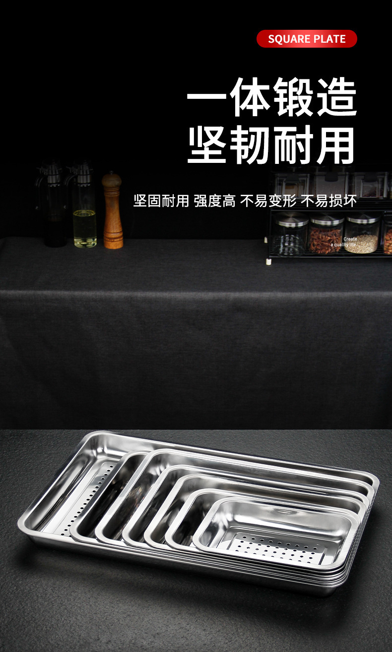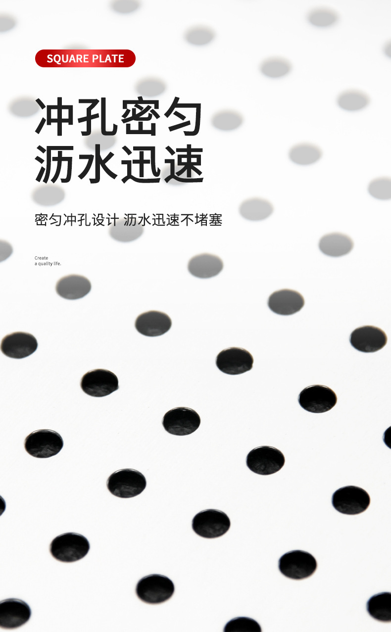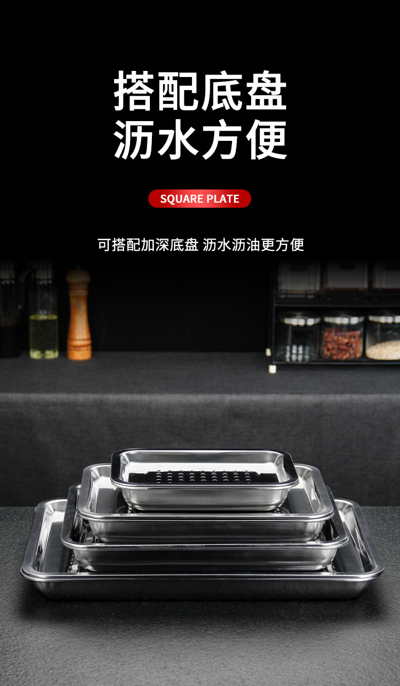 包装清单:1合恒工品不锈钢茶盘冲孔过滤储水盘沥水盘不锈钢方盘托盘烧烤盘