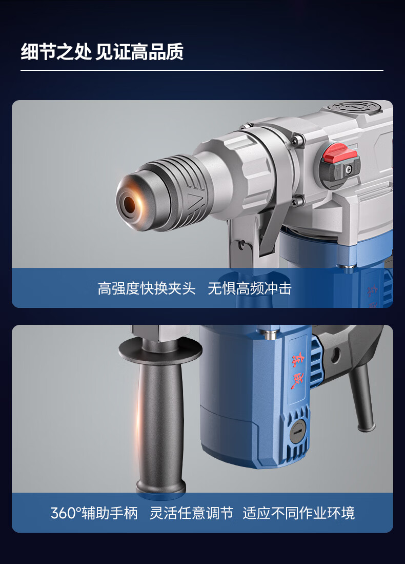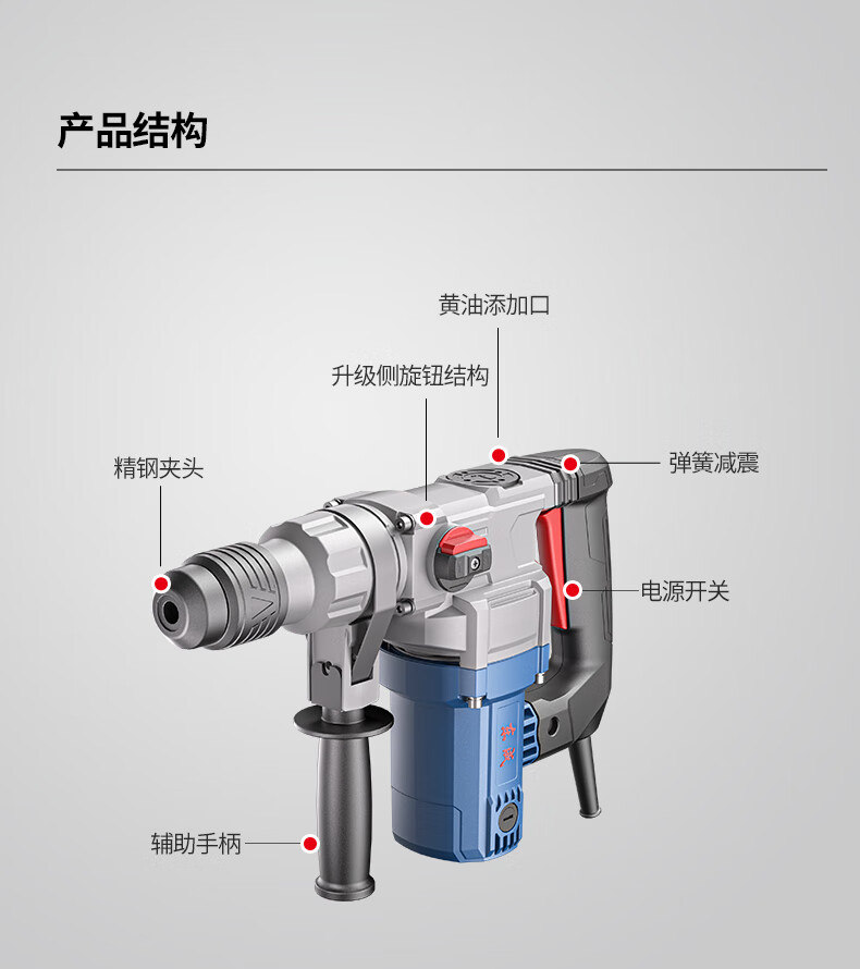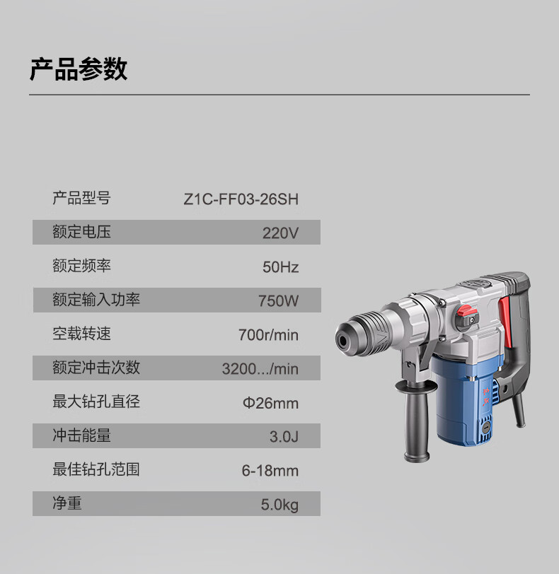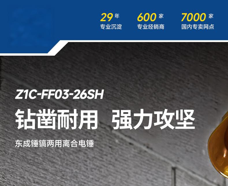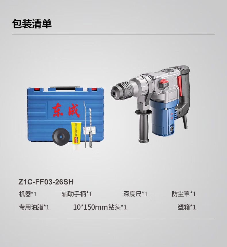 包装清单:1东成电锤Z1C-FF03-26SH有离合(双功能)锤镐两用减震系统安全离合