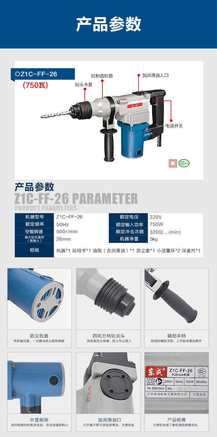 包装清单:1东成 DongCheng 电锤电镐两用 冲击钻 家用混凝土单用 工业级