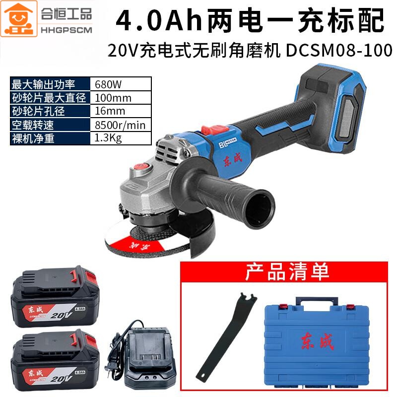 东成充电式无刷角磨机DCSM04-100(E型)20V4.0ah*2锂电打磨机切割机抛光机家用角磨机