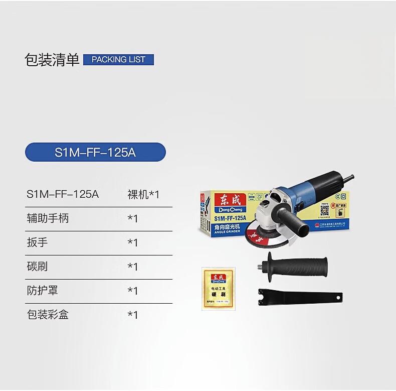 包装清单:1东成角向磨光机S1M-FF-150A(赠碳刷5副)1200W大功率磨光机手磨机