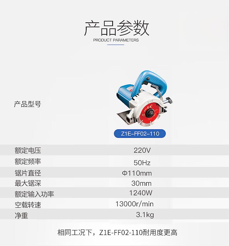 商品名称:东成石材切割机Z1E-FF02-110大理石混凝土开槽石材切割电动工具