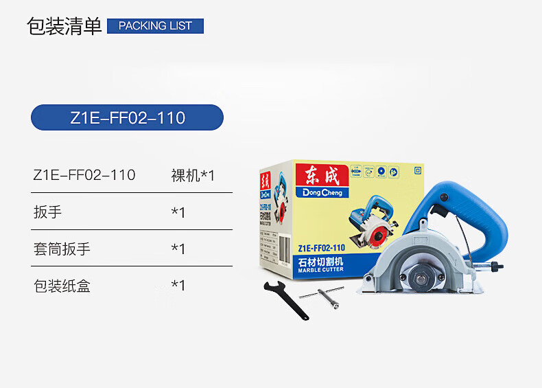 包装清单:1东成石材切割机Z1E-FF02-110大理石混凝土开槽石材切割电动工具