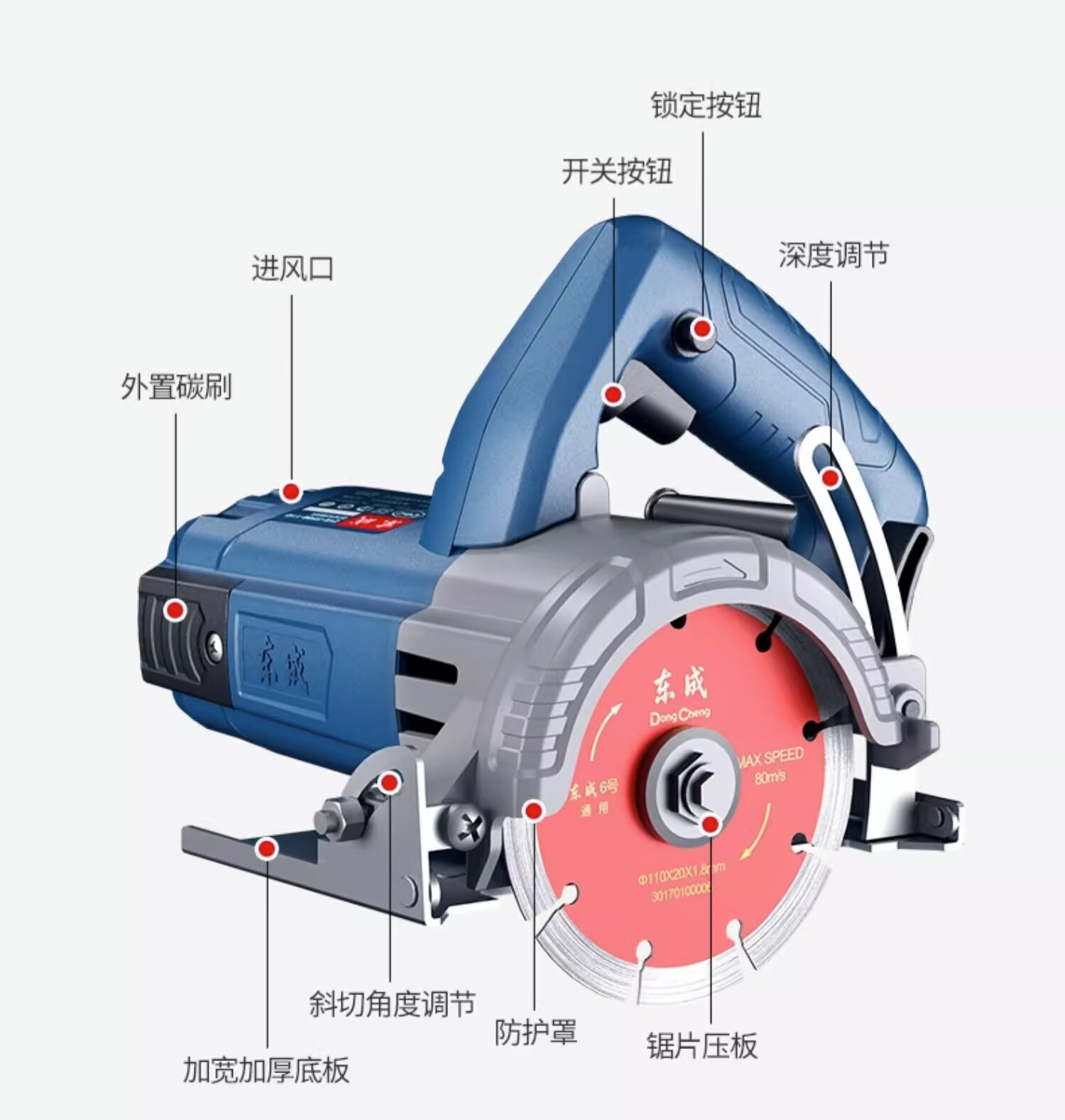 商品名称:东成石材切割机Z1E-FF02-125家用云石机开槽瓷砖石材手提木工小型专用混凝土电锯