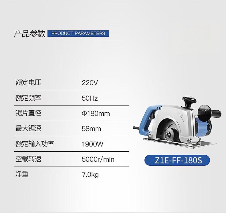 商品名称:东成石材切割机Z1E-FF-180S家用云石机开槽瓷砖石材手提木工小型专用混凝土电锯