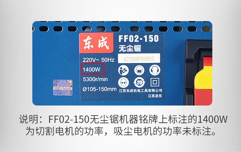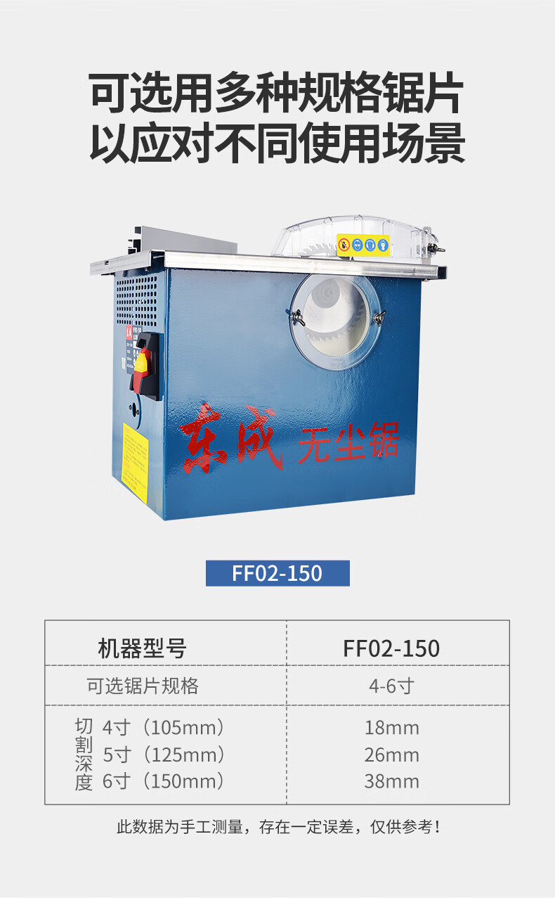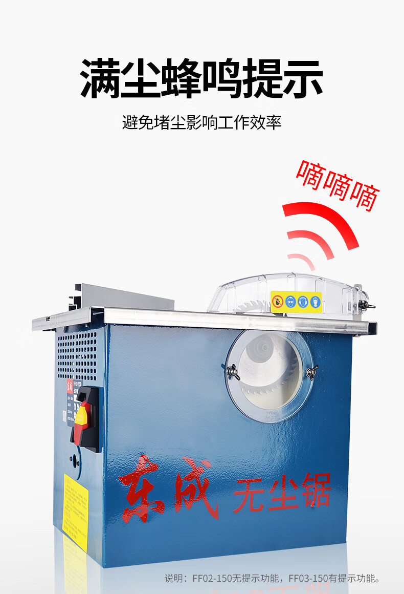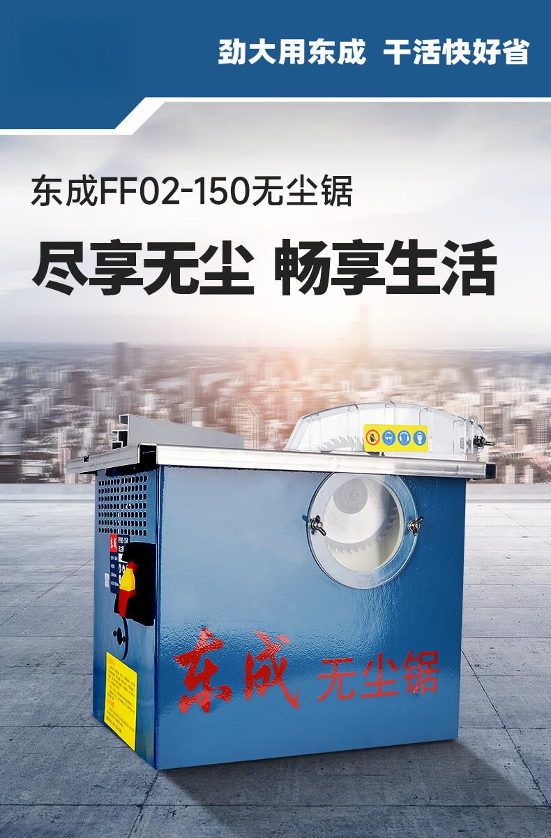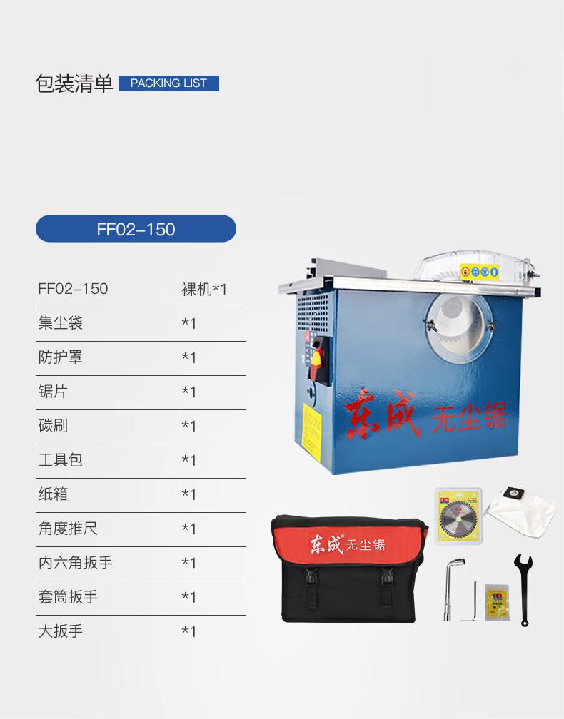 包装清单:1东成无尘锯FF02-150(赠碳刷1副)多功能家用台式1400W大功率电锯小型推台锯精密锯