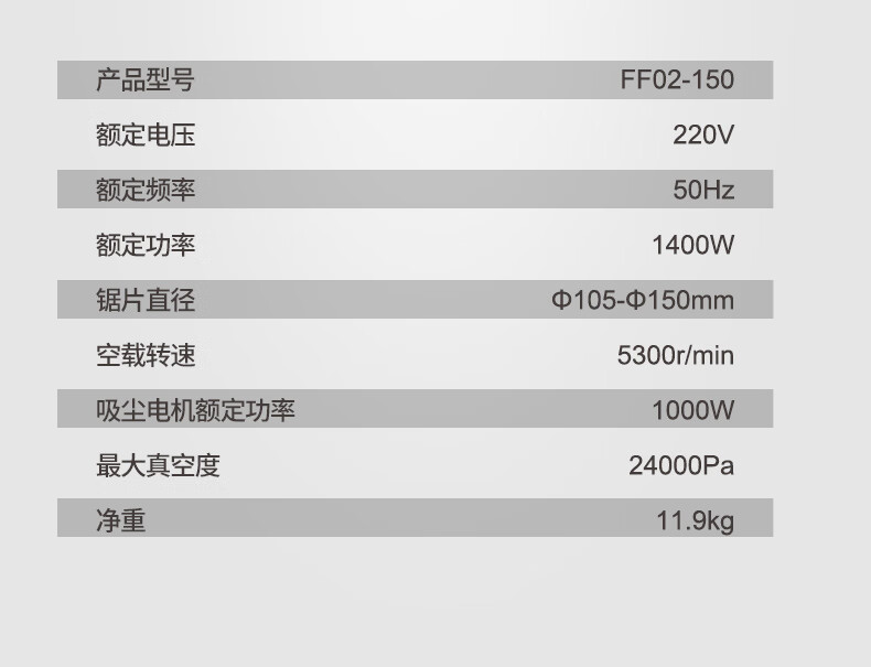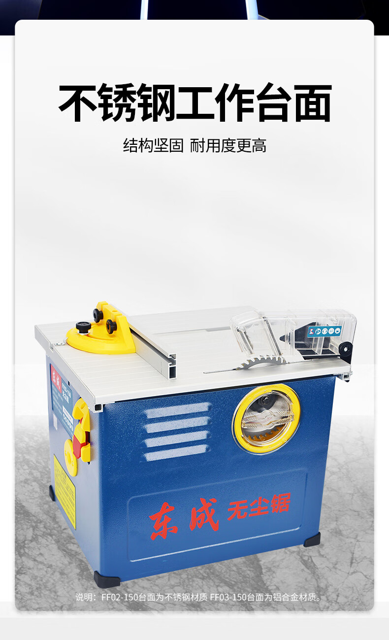 商品名称:东成无尘锯FF02-150(赠碳刷1副)多功能家用台式1400W大功率电锯小型推台锯精密锯