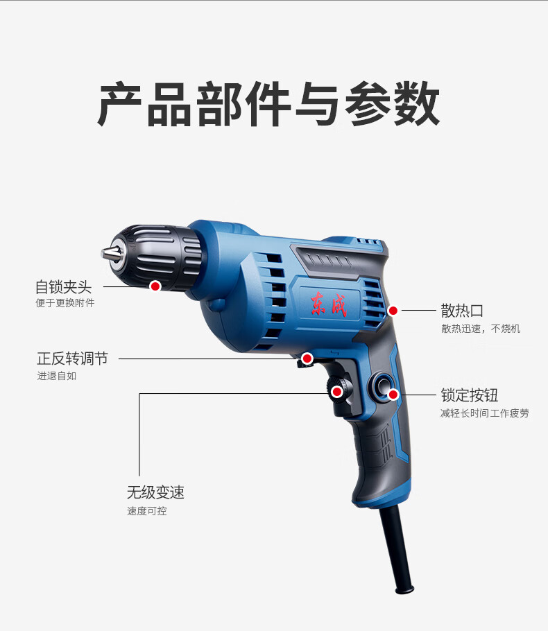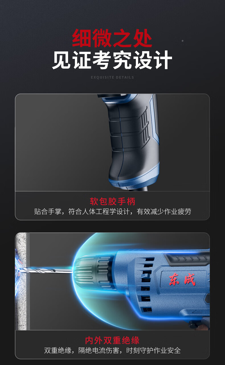 包装清单:1东成电钻J1Z-FF05-10BK 600W大功率手枪钻起子机电动螺丝刀东城电转