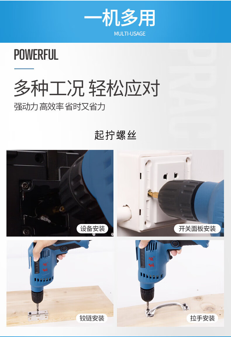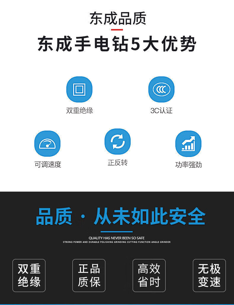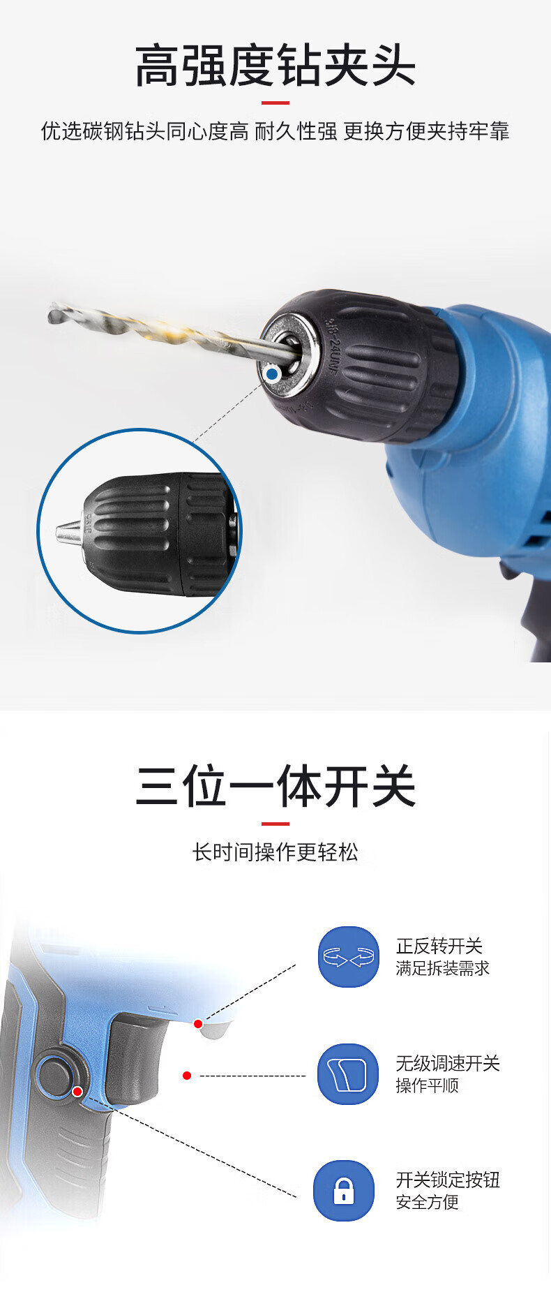 包装清单:1东成电钻J1Z-FF10-10K 460W正反转可调速多功能电钻